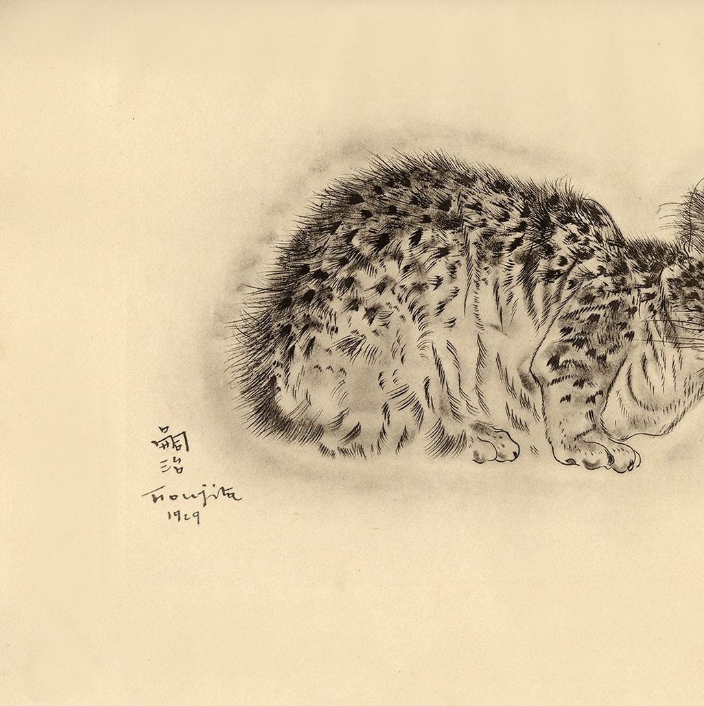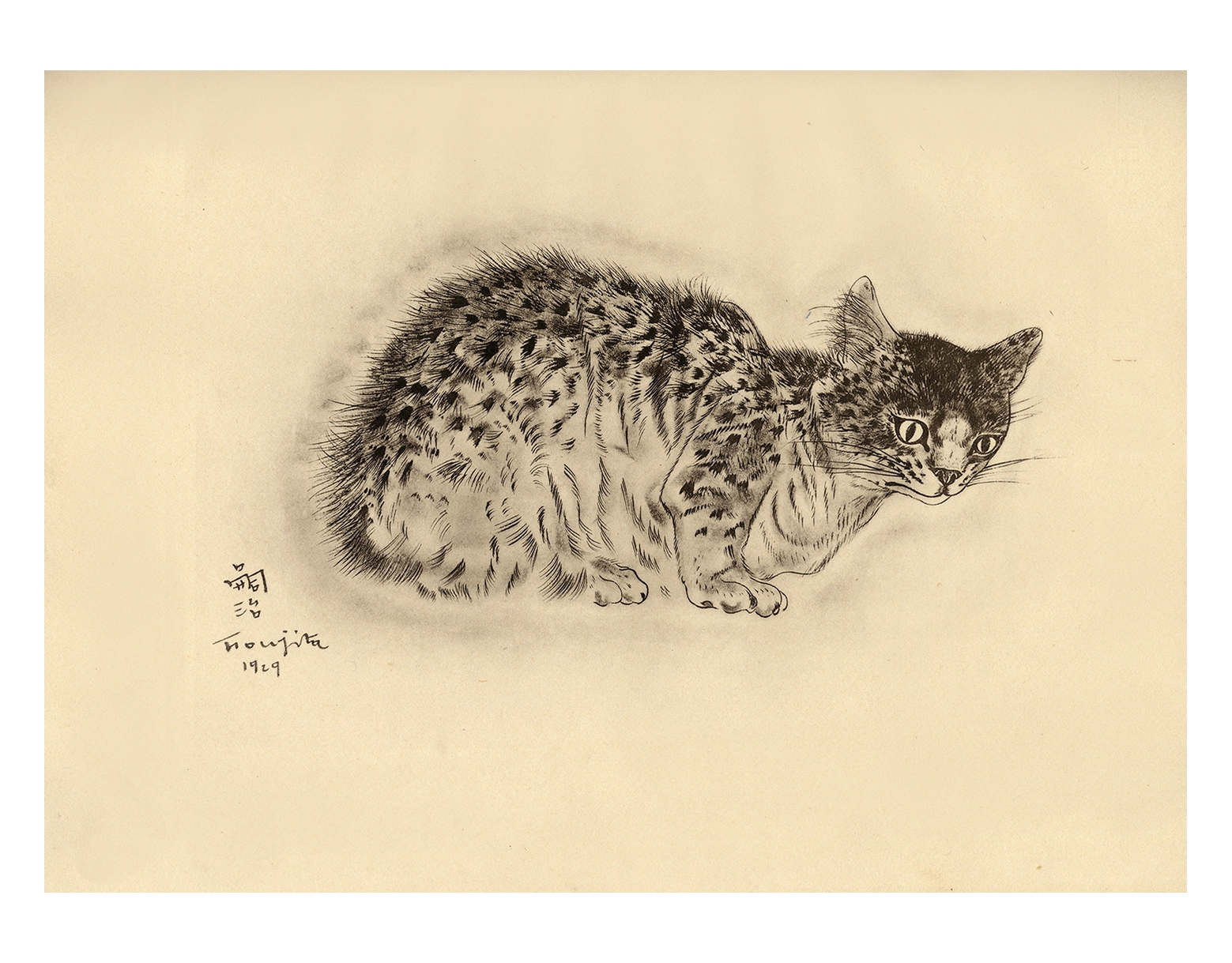 Tsuguharu Foujita : Né à Tokyo en 1886, Tsugouharu Foujita ou Tsuguharu Fujita, est un artiste complet (peintre, dessinateur, graveur, illustrateur, céramiste, photographe, cinéaste, créateur de mode...) de renommée internationale. Lorsqu'il arrive à Montparnasse en 1913, les compositions cubistes et les peintures du Douanier Rousseau de l'atelier de Picasso le poussent à intégrer l'avant-garde de l'Art moderne. Foujita devient un des plus importants membres l'École de Paris (qui éclos en 1918). Il se lie d'amitié avec Modigliani, Pascin, Moïse Kisling, Chana Orloff, Soutine, Derain, Vlaminck, Fernand Léger, Juan Gris, Matisse... Sa première exposition personnelle en juin 1917 est un triomphe ; il expose 110 aquarelles dans un genre mi japonais, mi-gothique. Il est de tous les salons de peinture à Paris, Bruxelles, en Allemagne, aux États-Unis et au Japon. Il connait un triomphe durant les Années Folles à Montparnasse : Ses tableaux de femmes, d'enfants et de chats entrent dans les plus grandes collections. En 1955, il obtient la nationalité française. Il se convertit au catholicisme 4 ans plus tard et prend le nom de Léonard. En 1964, il décide avec René Lalou de bâtir et décorer la chapelle Notre-Dame-de-la-Paix (chapelle Foujita) à Reims. Léonard Foujita meurt en 1968 à Zurich.