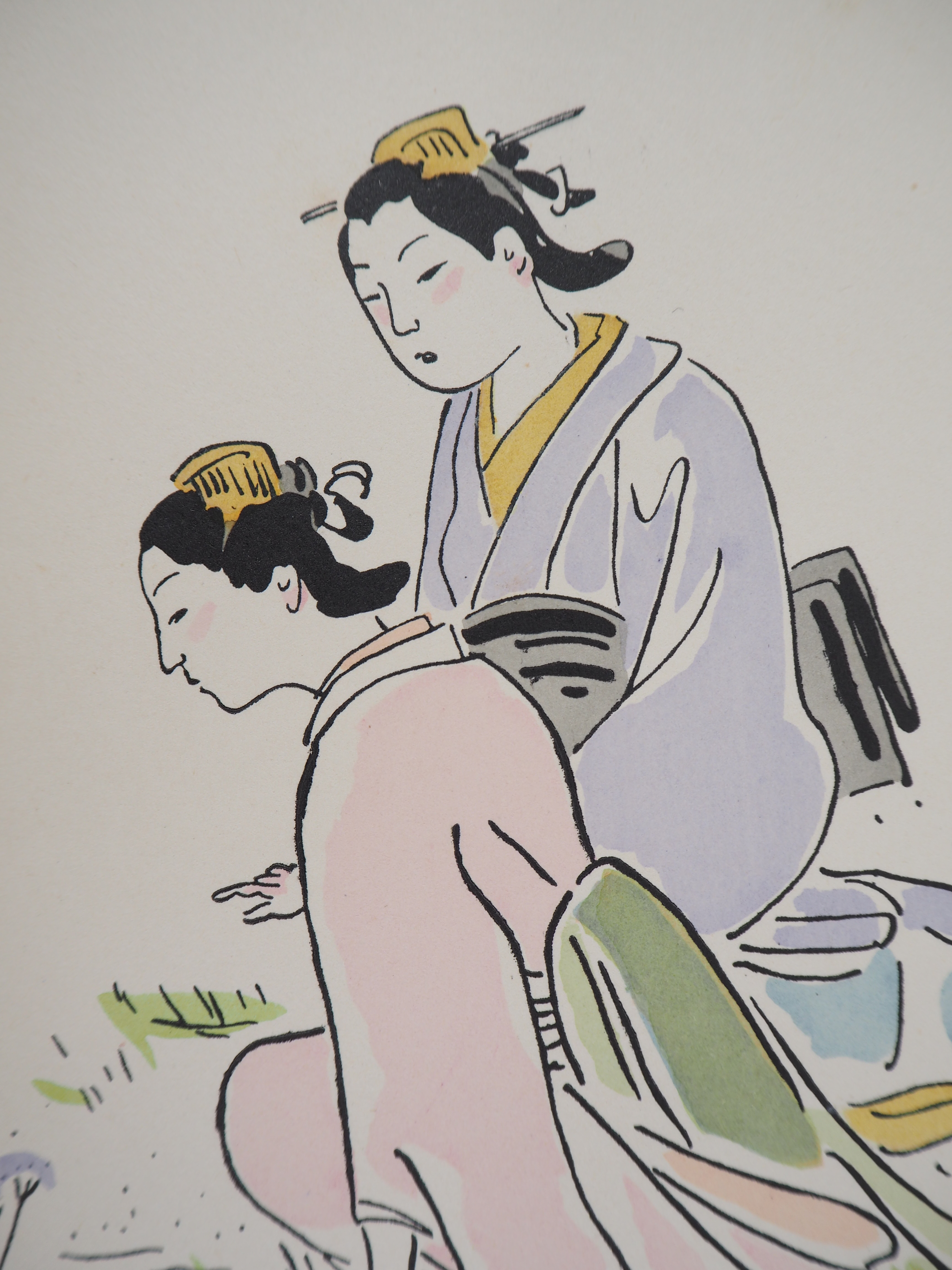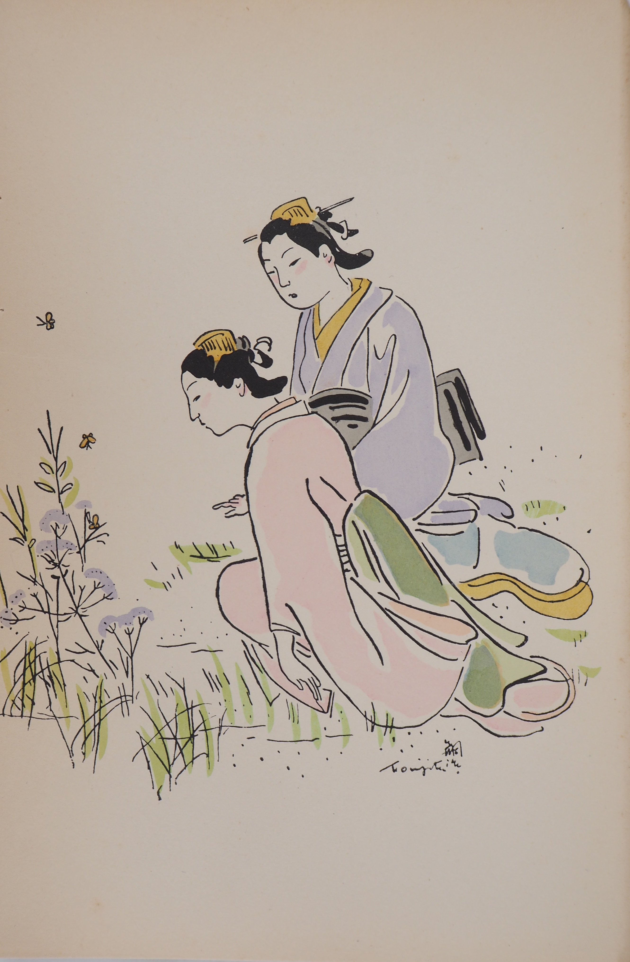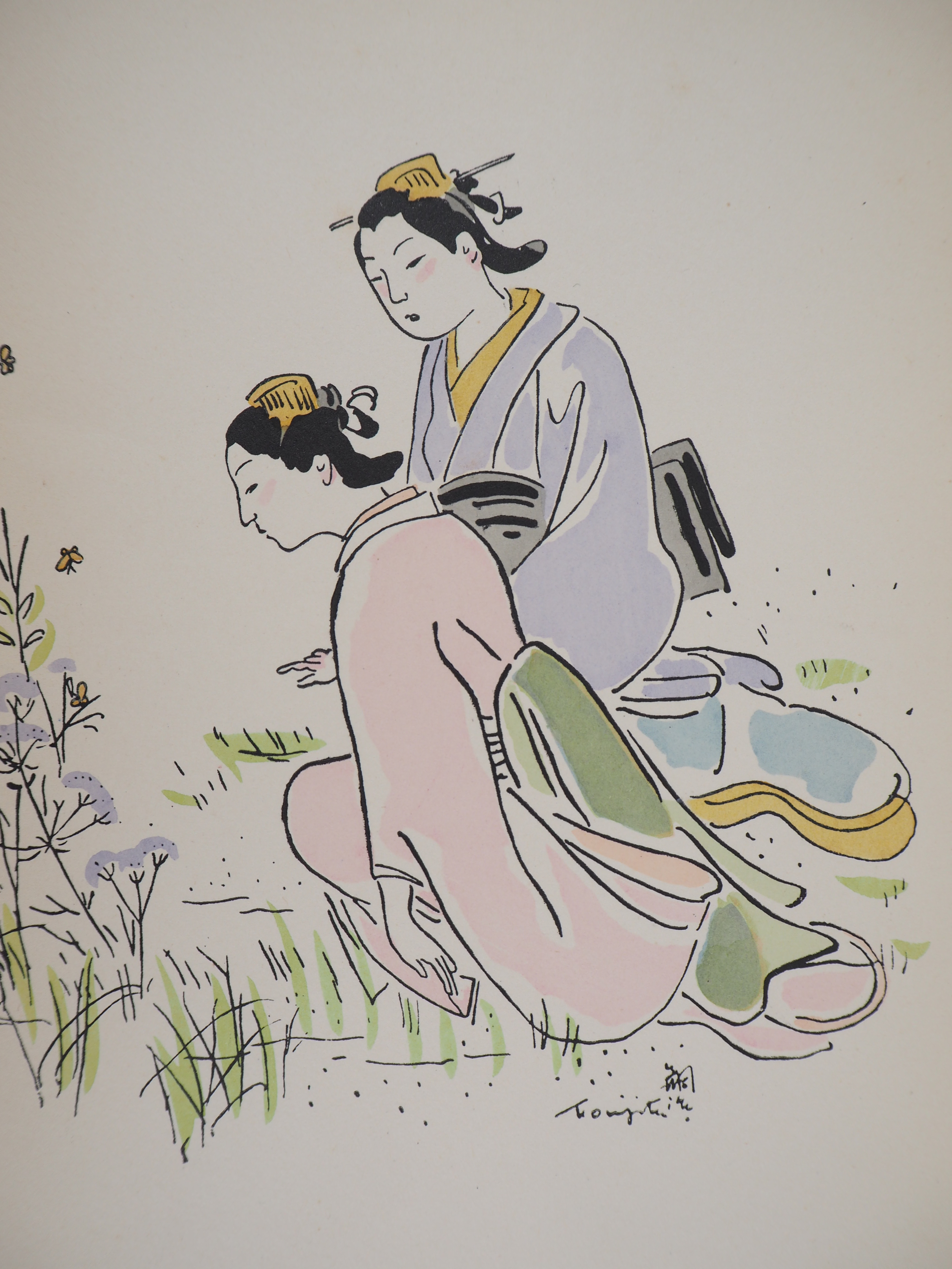 Né à Tokyo en 1886, Tsugouharu Foujita ou Tsuguharu Fujita, est un artiste complet (peintre, dessinateur, graveur, illustrateur, céramiste, photographe, cinéaste, créateur de mode...) de renommée internationale. Lorsqu'il arrive à Montparnasse en 1913, les compositions cubistes et les peintures du Douanier Rousseau de l'atelier de Picasso le poussent à intégrer l'avant-garde de l'Art moderne. Foujita devient un des plus importants membres l'École de Paris (qui éclos en 1918). Il se lie d'amitié avec Modigliani, Pascin, Moïse Kisling, Chana Orloff, Soutine, Derain, Vlaminck, Fernand Léger, Juan Gris, Matisse... Sa première exposition personnelle en juin 1917 est un triomphe ; il expose 110 aquarelles dans un genre mi japonais, mi-gothique. Il est de tous les salons de peinture à Paris, Bruxelles, en Allemagne, aux États-Unis et au Japon. Il connait un triomphe durant les Années Folles à Montparnasse : Ses tableaux de femmes, d'enfants et de chats entrent dans les plus grandes collections. En 1955, il obtient la nationalité française. Il se convertit au catholicisme 4 ans plus tard et prend le nom de Léonard. En 1964, il décide avec René Lalou de bâtir et décorer la chapelle Notre-Dame-de-la-Paix (chapelle Foujita) à Reims. Léonard Foujita meurt en 1968 à Zurich.