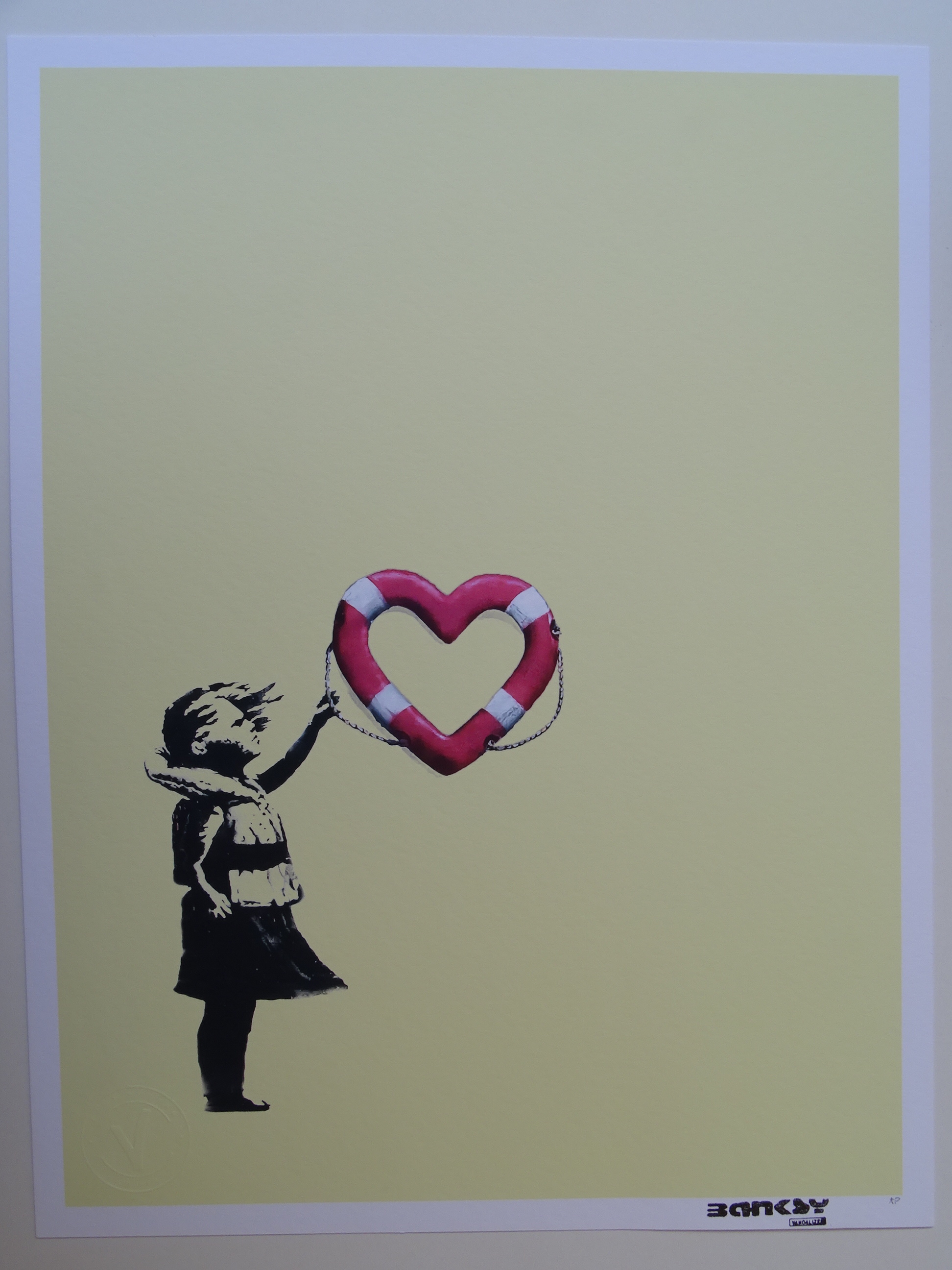 Banksy x Post Modern Vandal - Fille avec flotteur en forme de cœur (jaune), 2021 - Impression pigmentaire