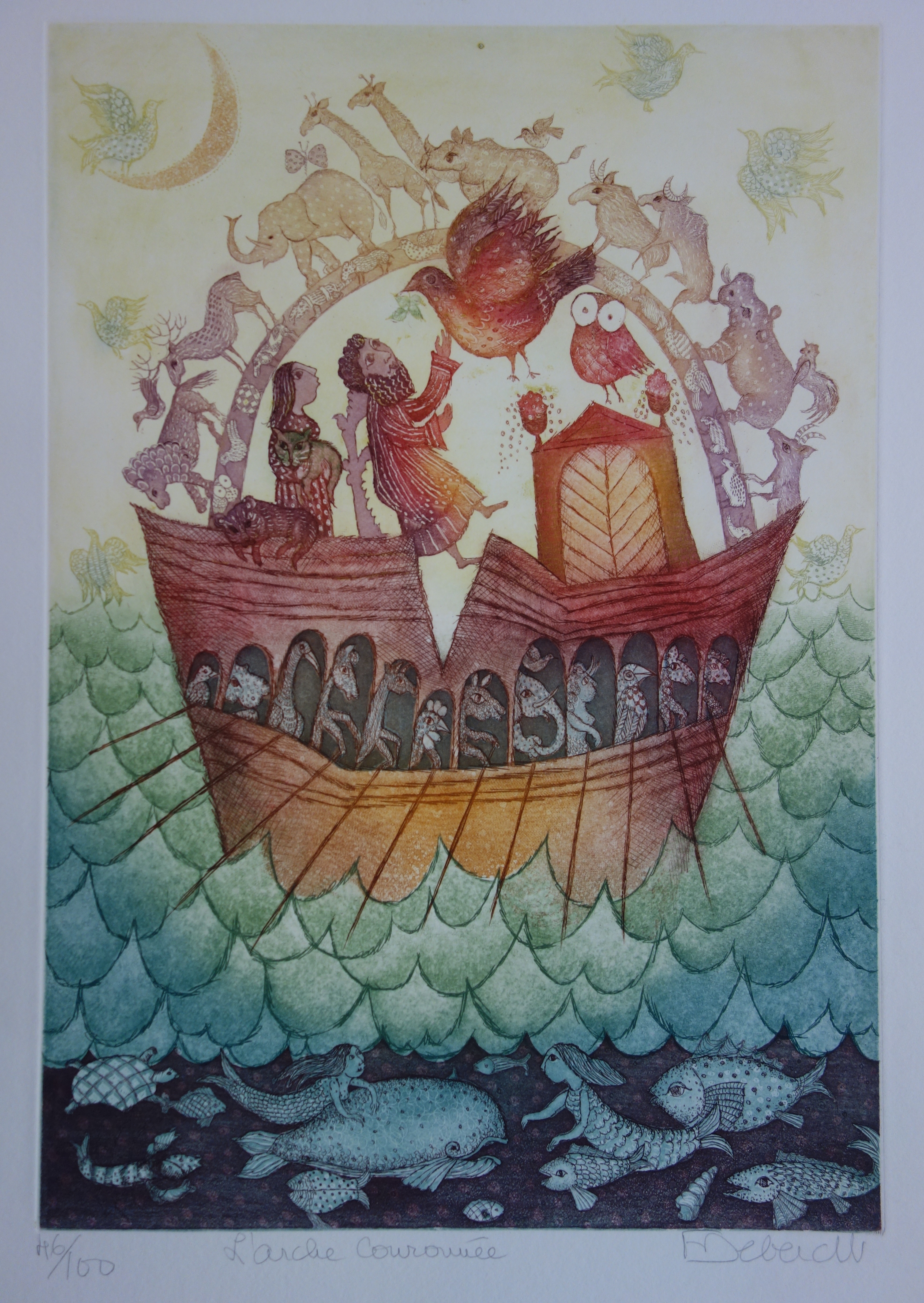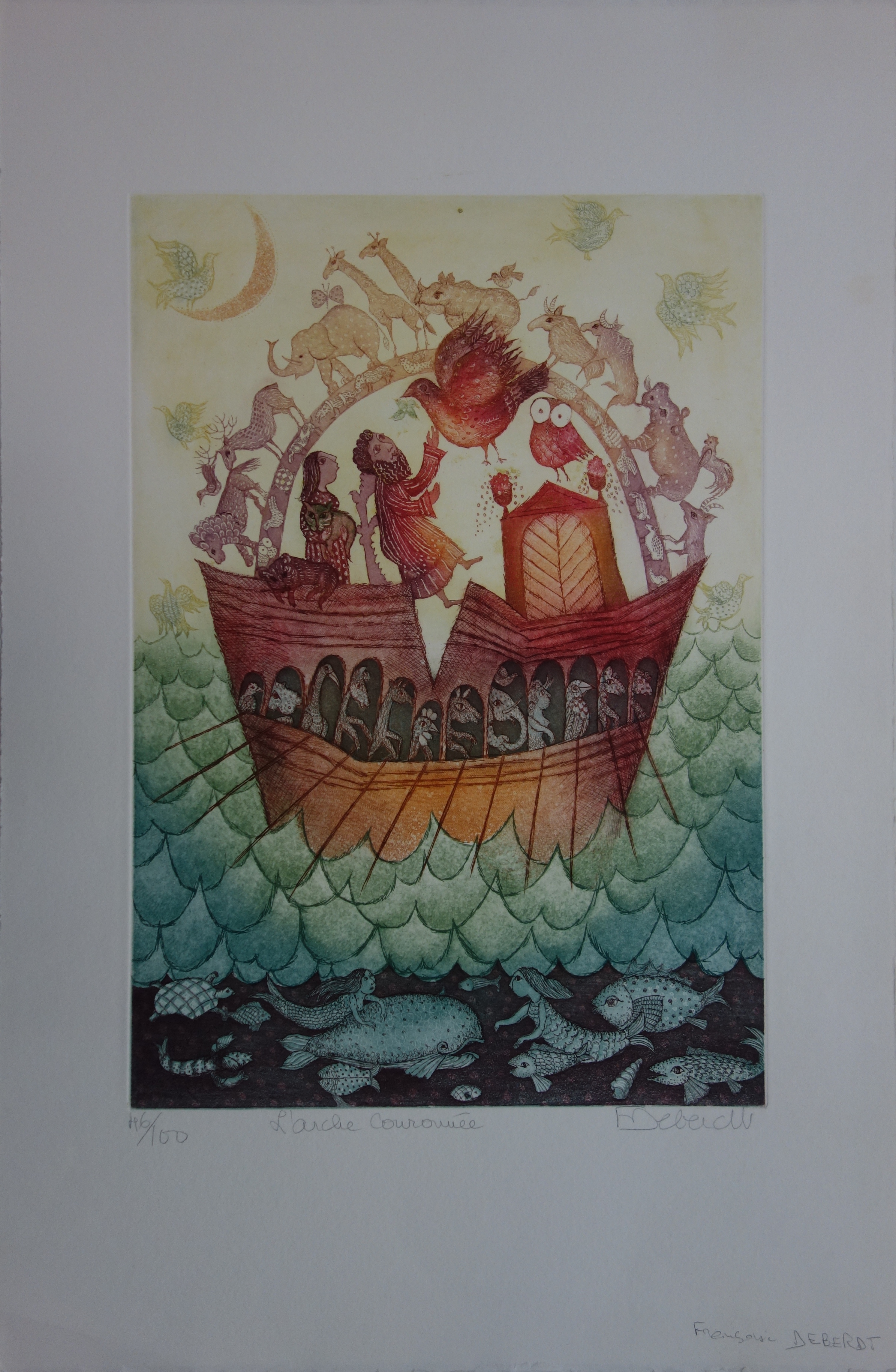 Françoise DEBERDT - L’arche couronnée, gravure originale signée