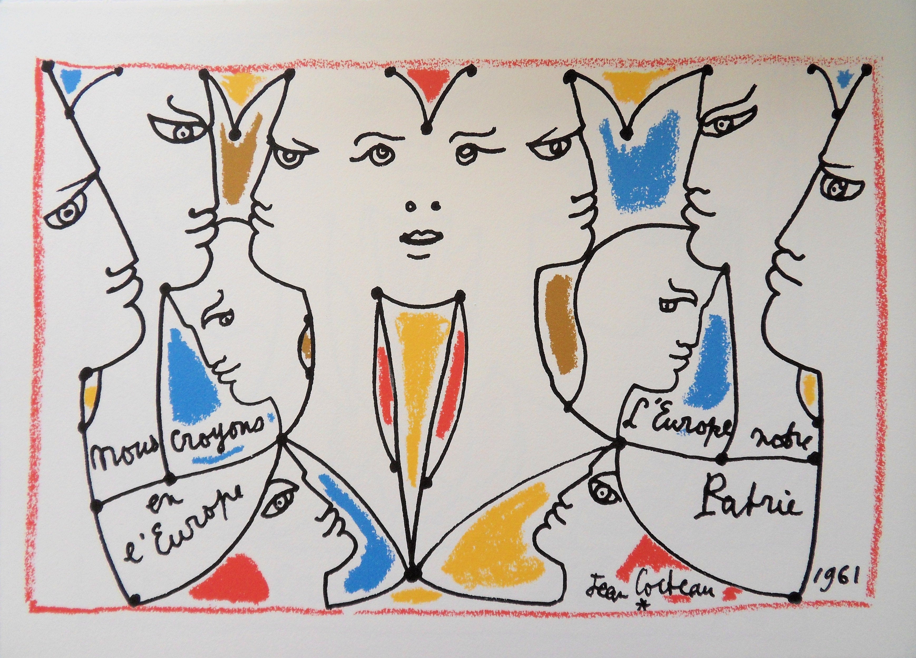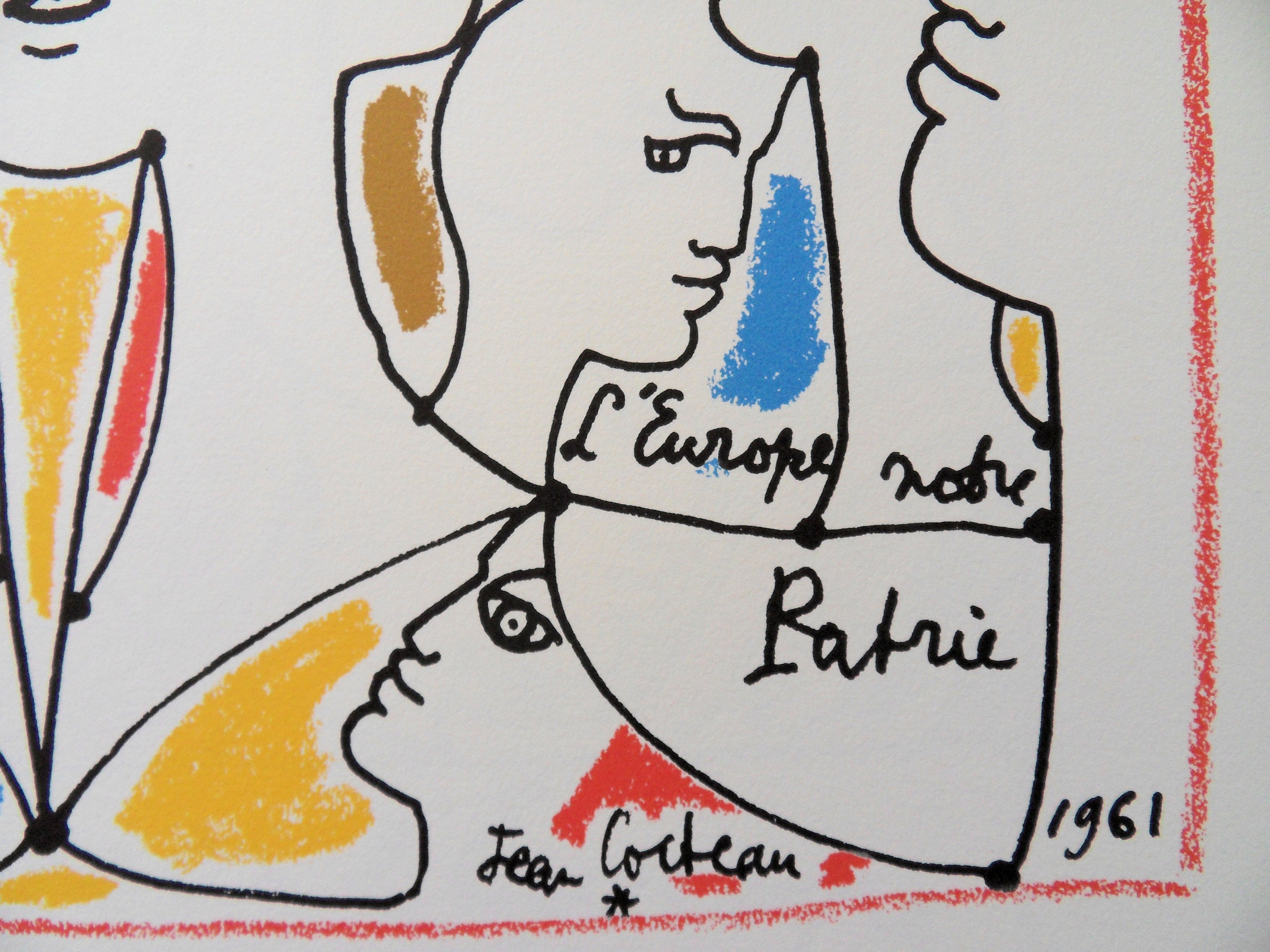 Jean COCTEAU : Europe - les désaccords, Lithographie signée, 1961