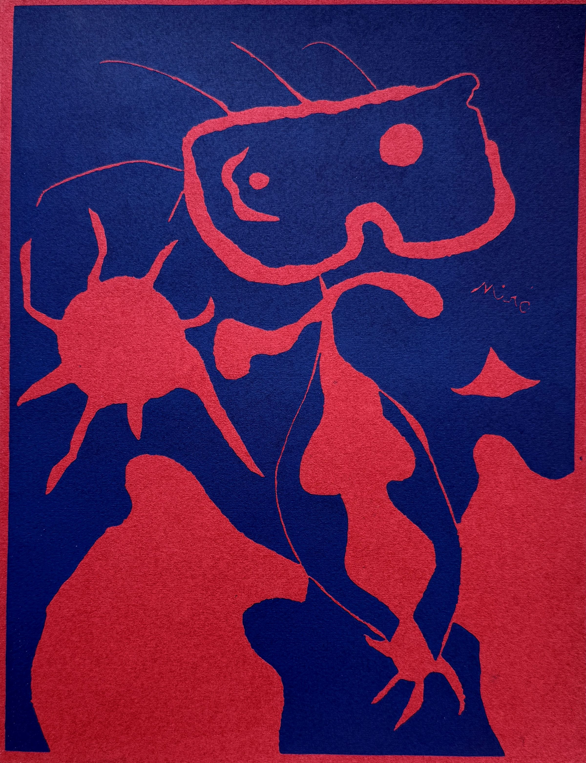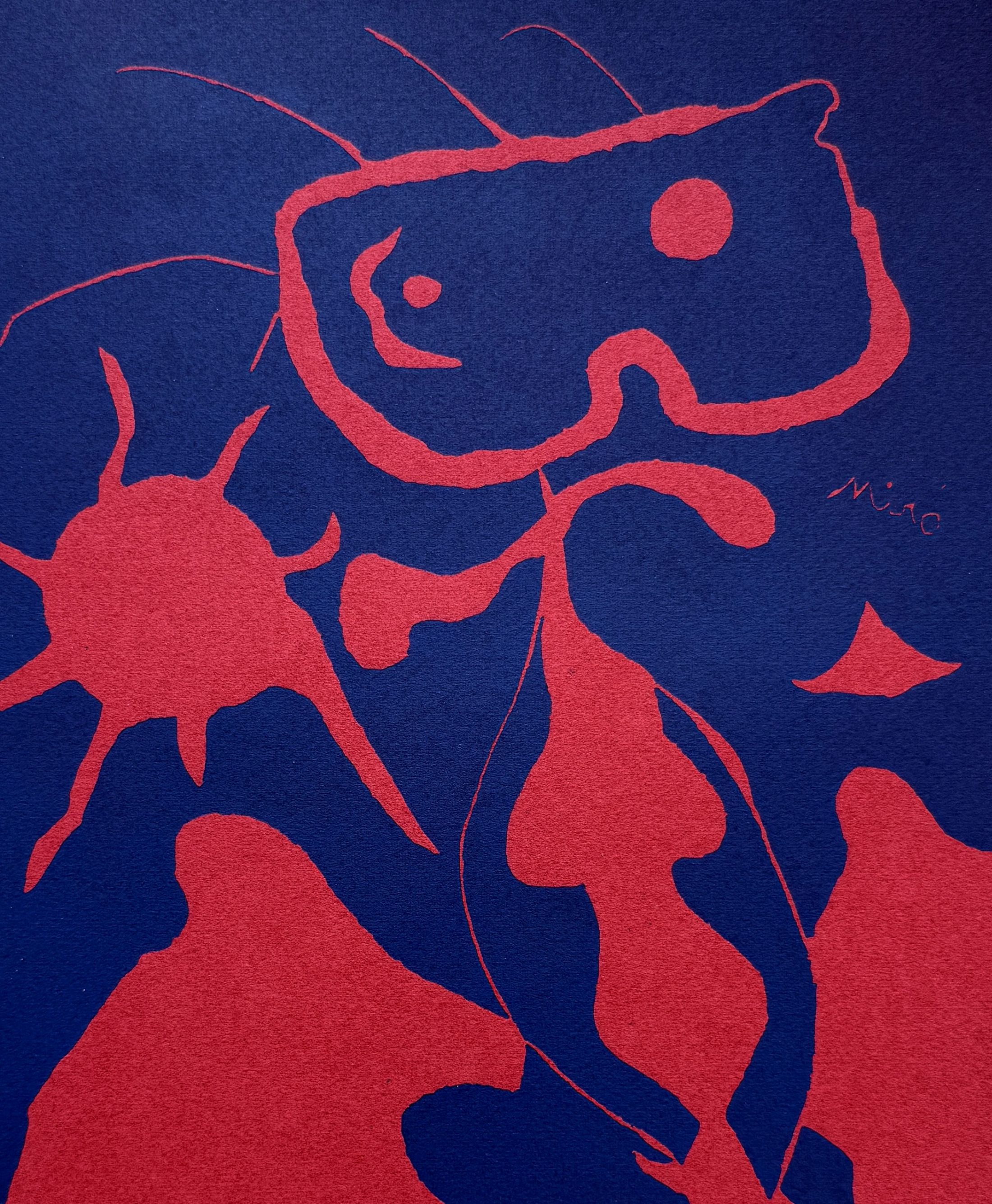 Joan MIRO - Homme au soleil rouge - Linogravure originale signée