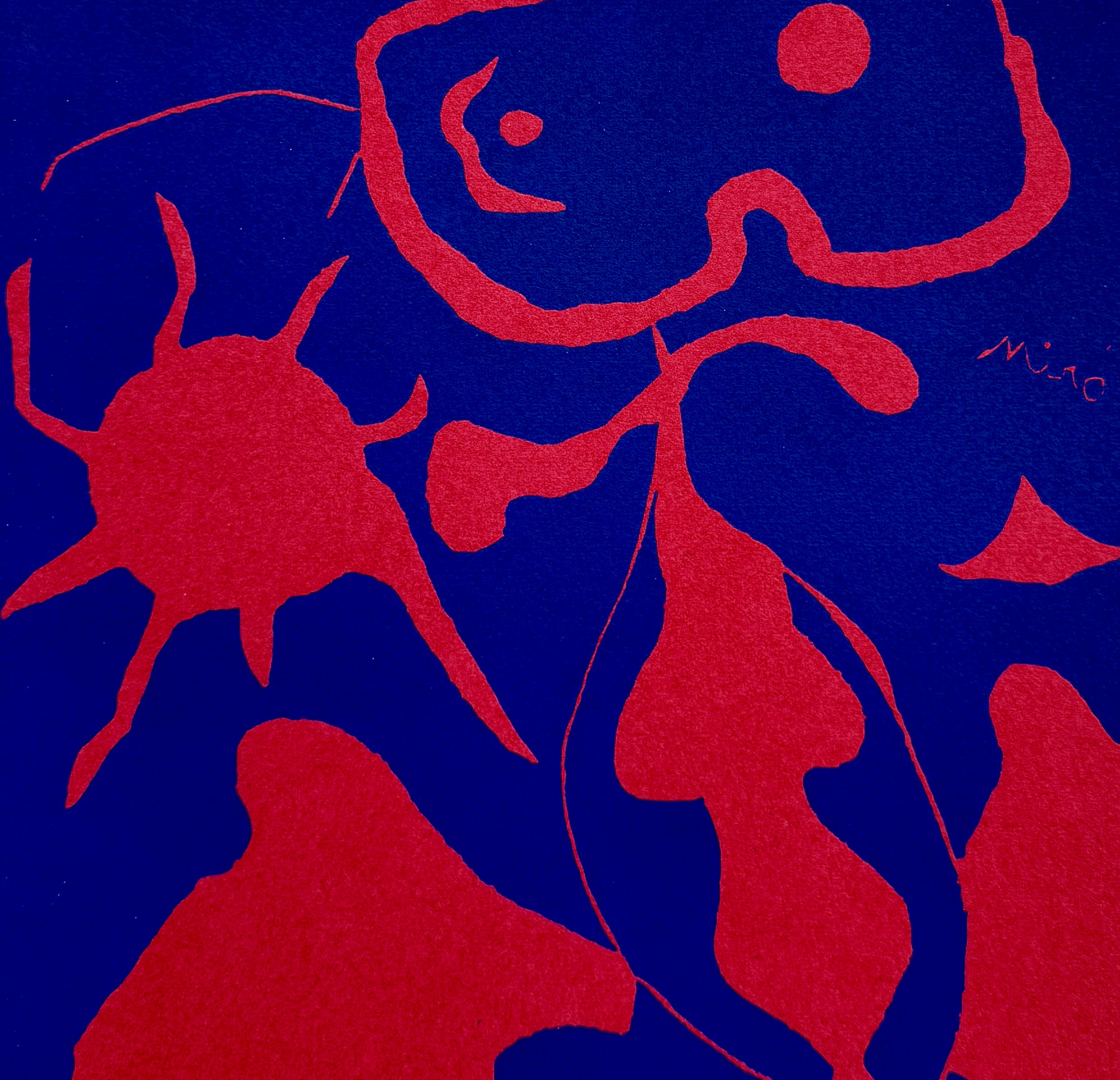 Joan MIRO - Homme au soleil rouge - Linogravure originale signée