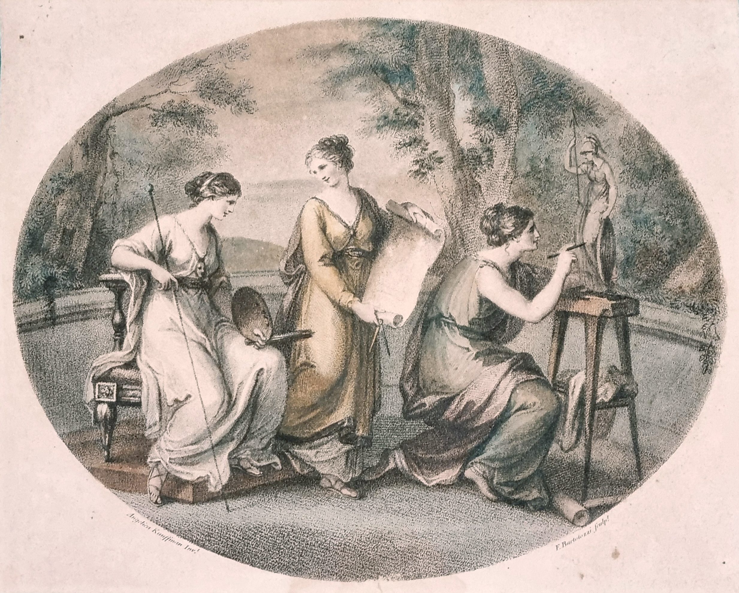 Francesco Bartolozzi, Les trois Beaux-Arts, gravure d’après Angelica Kauffman, vers 1783