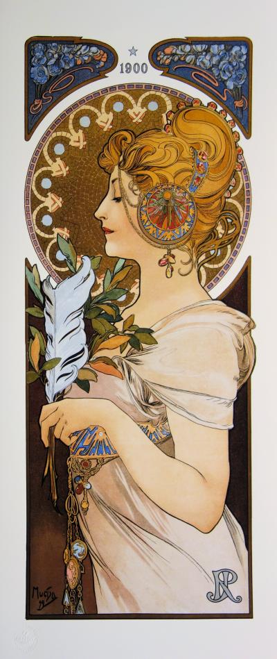 (1860-1939) est un affichiste, illustrateur, peintre et architecte d’intérieur tchèque. Il est aujourd’hui considéré comme l’un des pionniers de l’Art Nouveau. Enfant, il est d’abord orienté par le chant, mais peint déjà quelques toiles, de nos jours très recherchées. Il est refusé des Beaux-Arts de Prague en 1878, ce qui ne sera pas suffisant pour le décourager. Mucha séjourne et travaille à Vienne, dans la plus grande entreprise de décors de théâtre, réalise des portraits en indépendant (le plus souvent de femmes qu’il photographie au préalable), entre à l’Académie de Munich, puis se rend à Paris, où sa carrière d’affichiste débute.