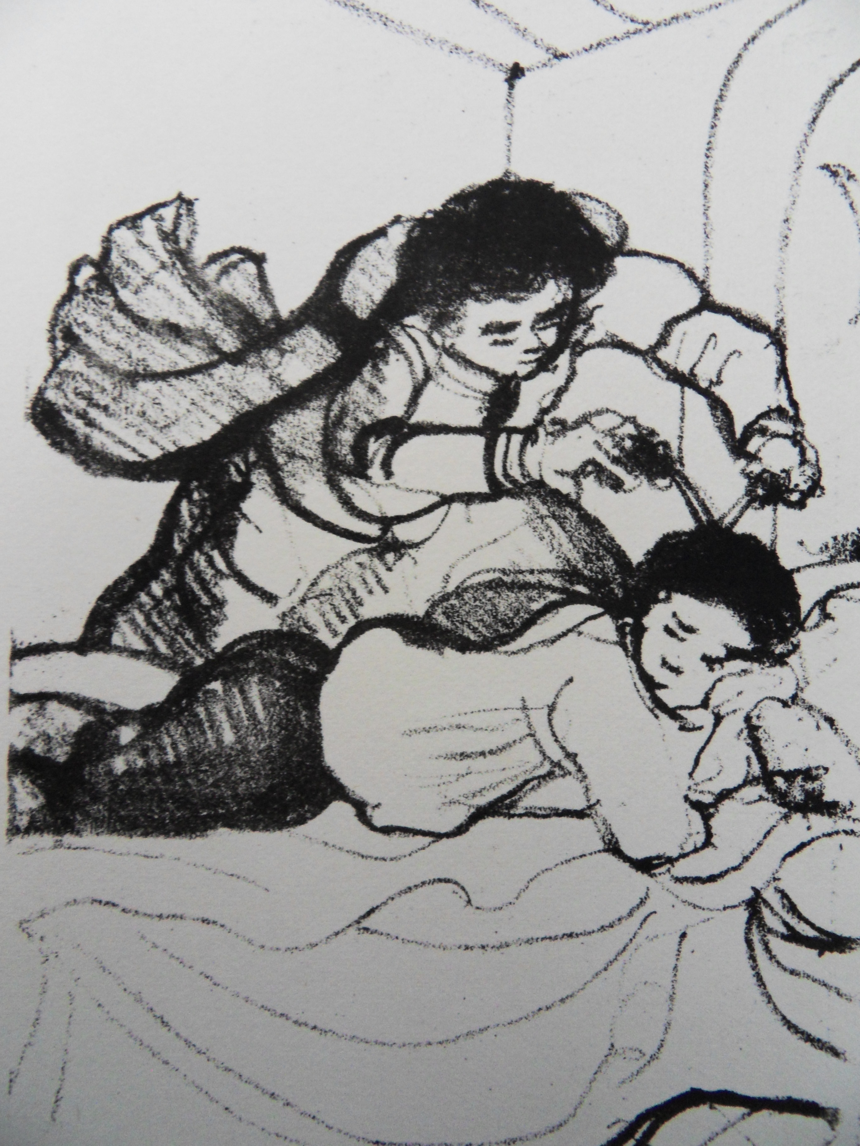 Lithographie : La lithographie tire son nom du grec lithos «pierre» et graphein, «écrire». Il s'agit d'une technique d’impression qui permet la création et la reproduction d'oeuvres graphiques en plusieurs exemplaires à partir de dessins reproduits sur une pierre calcaire. Le papier est mis en contact des pierres encrées dans une presse. Les lithographies peuvent être numérotées ou non. Des grands ateliers, comme Maeght ou Mourlot, maitres dans cette technique, et spécialisé dans cette technique on produit des lithographies des plus grands maîtres, très recherchées aujourd'hui