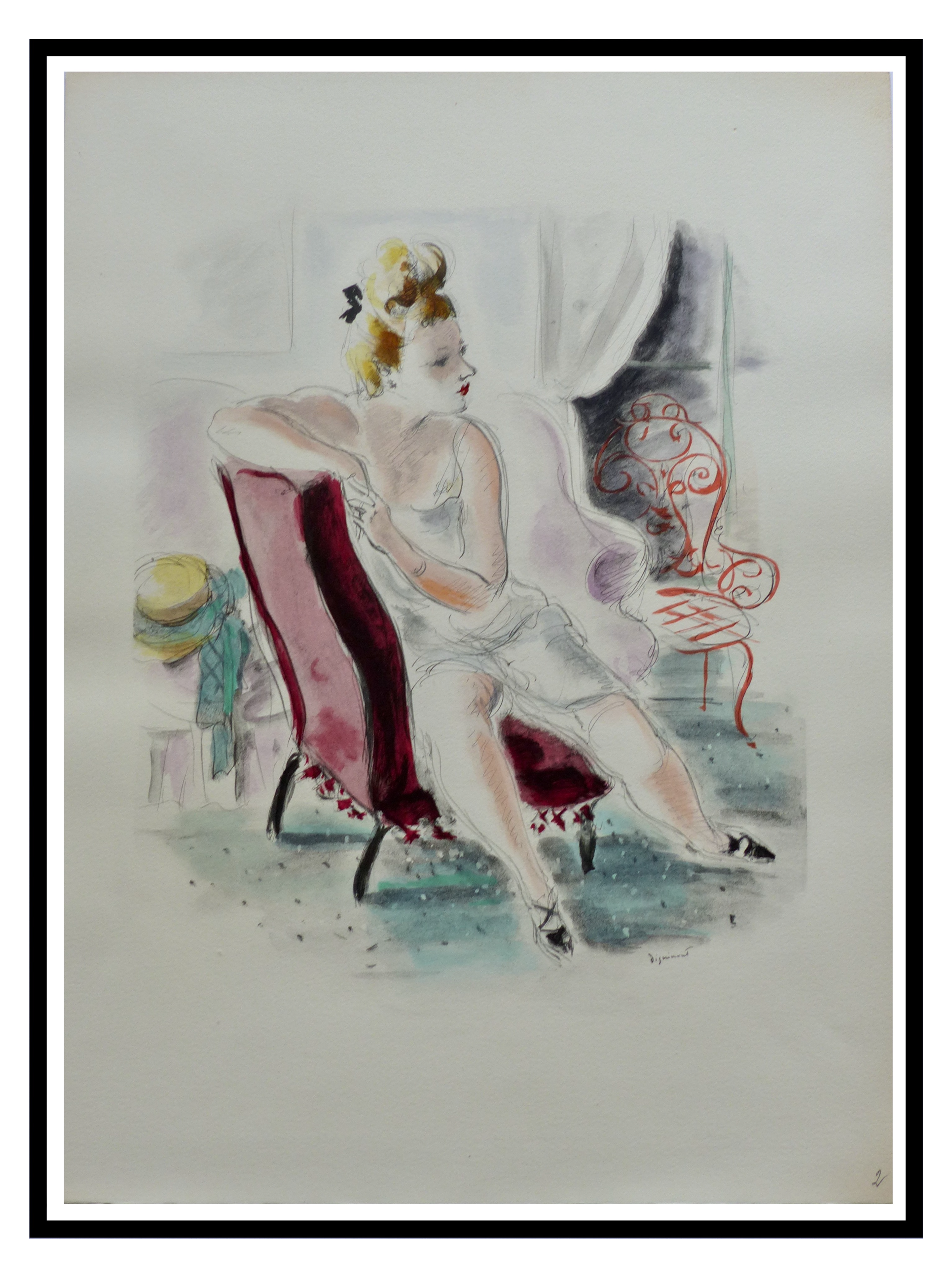 La carrière d'André Dignimont s'étend sur plus de quatre décennies, le conduisant aussi bien vers le portrait et le nu féminin (aquarelles, dessins et estampes, Dignimont ne peignant pas sur toile) que vers l'illustration des livres et le décor de théâtre, se liant par là aux artistes peintres, aux écrivains (Colette, Francis Carco, Pierre Mac Orlan) et aux comédiens. En 1927, il quitte Montmartre pour s'installer définitivement au 1, rue Boutarel dont, passionné de Marché aux puces, il fera un musée d'objets insolites.