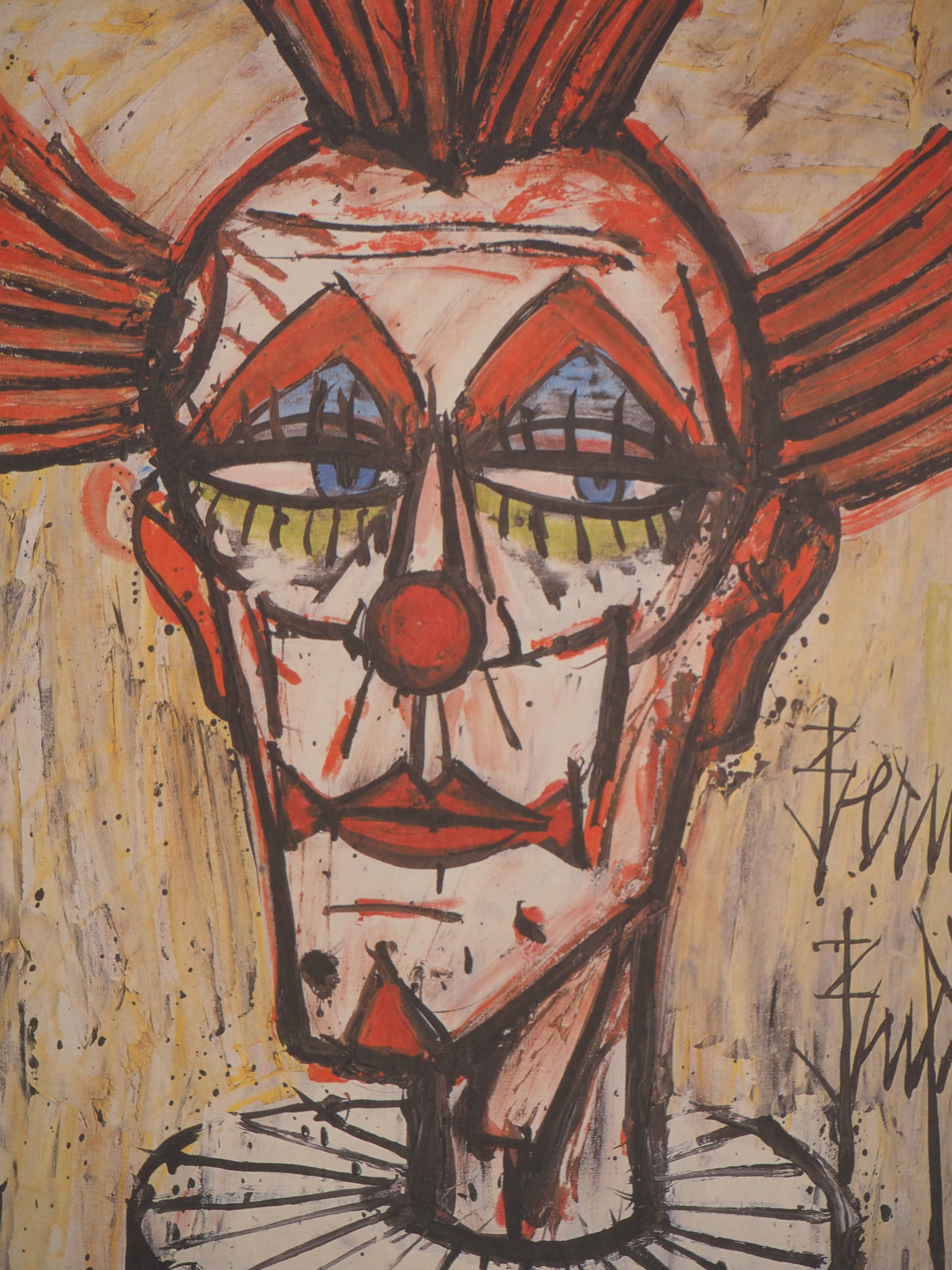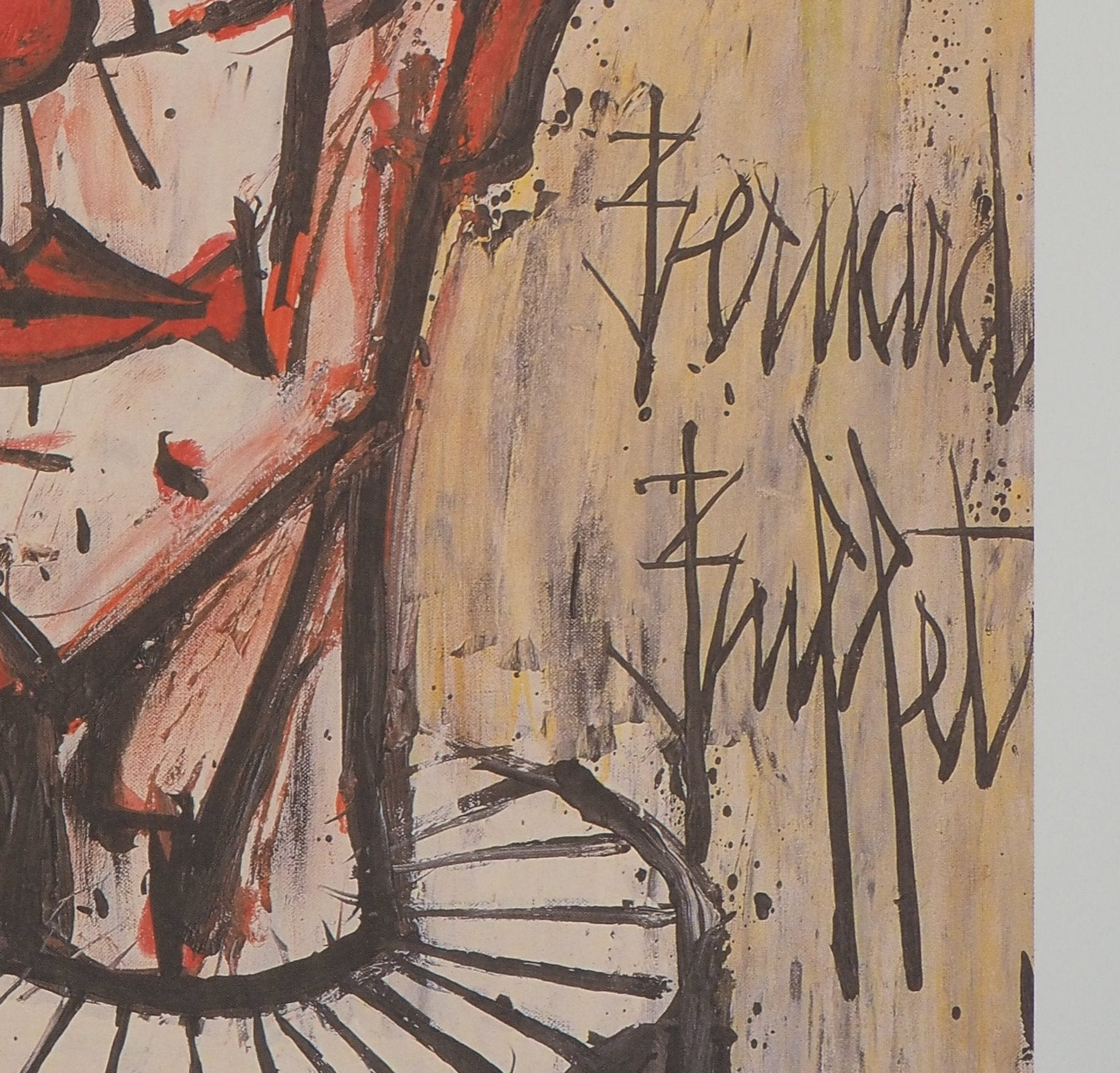 (1928 - 1999) est un peintre et lithographe expressionniste français célèbre. Issu d'un milieu cultivé de la petite bourgeoisie, ses deux grands-pères sont militaires, l'un est passionné de dessin, et son père est directeur d’une miroiterie. Très jeune, Bernard Buffet se passionne donc pour le dessin et la peinture. Il côtoie l’artiste Marie Thérèse Auffray qui lui enseigne la peinture et deviendra son mentor. En 1942, il suit des cours de dessin dans les cours du soir de la ville de Paris. En 1943, il remporte le concours d’entrée à l’Ecole nationale supérieure des baux-arts. A cette époque, il pratique la peinture dans l’atelier d’Eugène Narbonne. En 1945, il perd sa mère d’une tumeur au cerveau. Cet événement tragique le bouleverse et il ne se remettra jamais vraiment. En 1946, il expose sa première œuvre, un autoportrait au salon des moins de trente ans à la galerie des beaux-arts. En 1947, il expose L'Homme accoudé au Salon des indépendants qui va le révéler véritablement au grand public. L'État, par l'intermédiaire de Raymond Cogniat, lui fait son premier achat pour le Musée Nationale de la ville de Paris, la peinture Nature morte au poulet. Dans les années 50, il fait la rencontre de Pierre Bergé avec qui il nouera une relation. En 1958, il fait la connaissance de Annabel Schwob à Saint-Tropez et tombe éperdument amoureux. C’est la fin de sa relation avec Pierre Bergé qui gérait aussi sa carrière. Buffet épouse Annabel SchwobIl la même année. Il est élu à l’Académie des BeauxArts en 1974, il est le plus jeune académicien à cette époque.