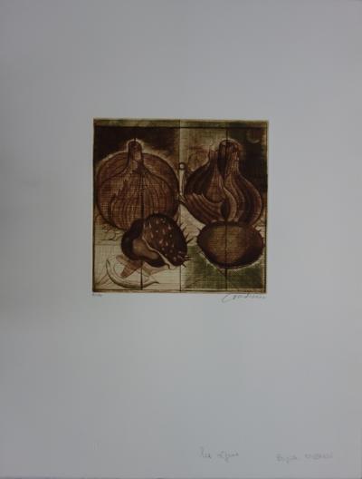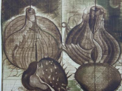 Brigitte COUDRAIN : Les oignons, Gravure originale signée