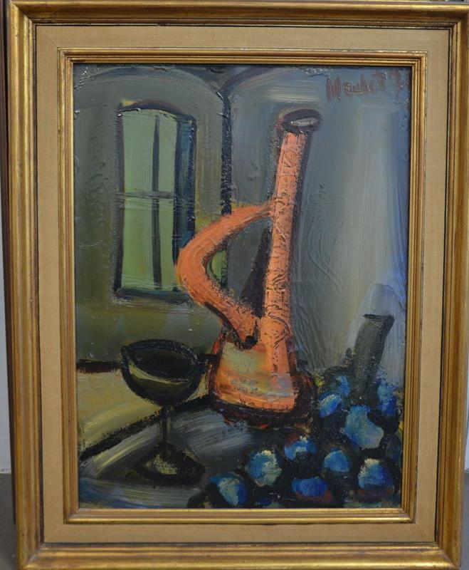 Claude MOULET "Nature morte à la cruche". Huile sur toile