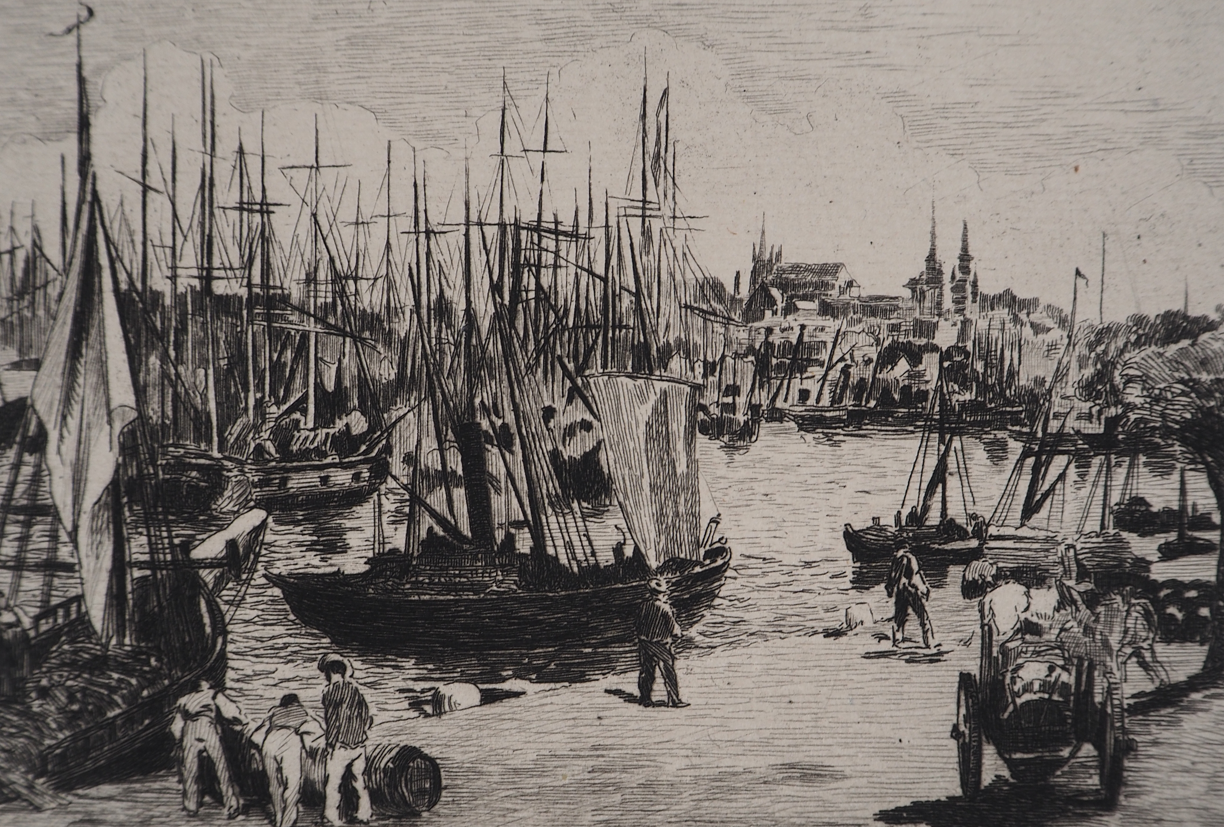 Edouard MANET (d’après) : Le port de Bordeaux - Gravure, Signée #Durand Ruel - 1873