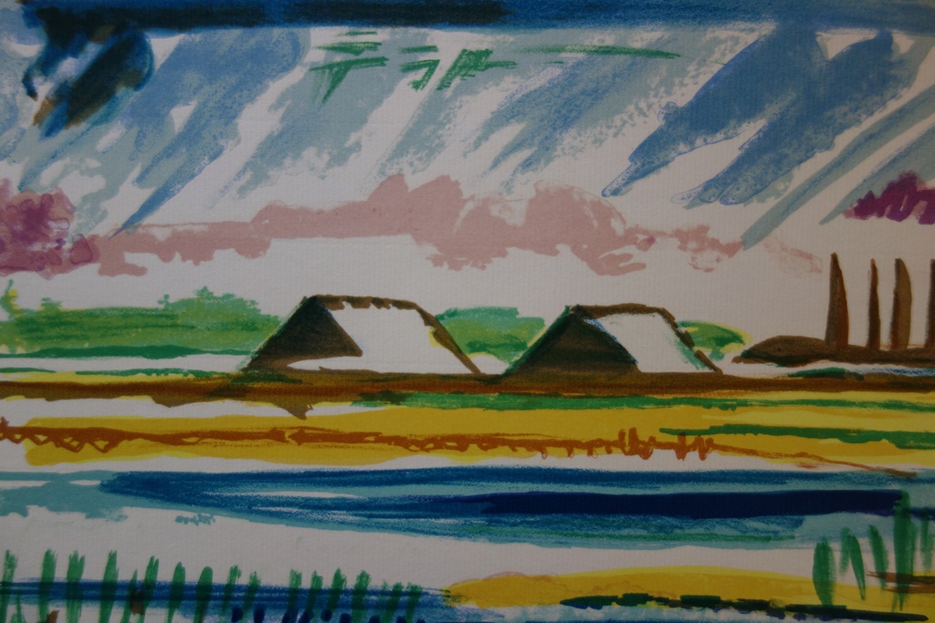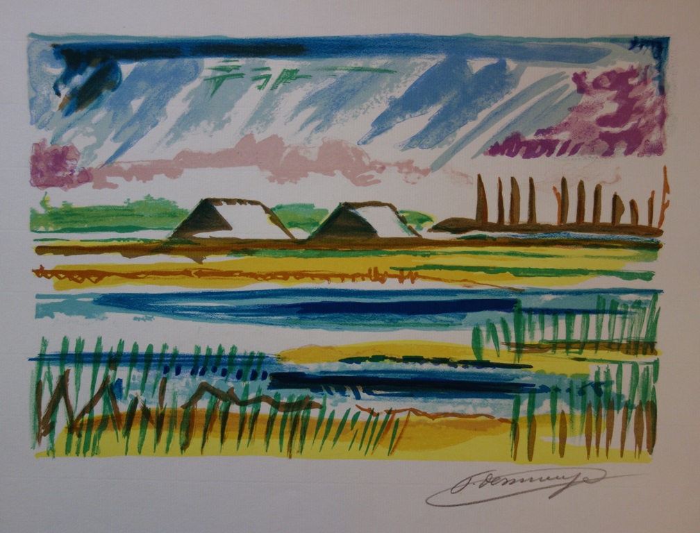 La lithographie tire son nom du grec lithos «pierre» et graphein, «écrire». Il s'agit d'une technique d’impression qui permet la création et la reproduction d'oeuvres graphiques en plusieurs exemplaires à partir de dessins reproduits sur une pierre calcaire. Le papier est mis en contact des pierres encrées dans une presse. Les lithographies peuvent être numérotées ou non. Des grands ateliers, comme Maeght ou Mourlot, maitres dans cette technique, et spécialisé dans cette technique on produit des lithographies des plus grands maîtres, très recherchées aujourd'hui