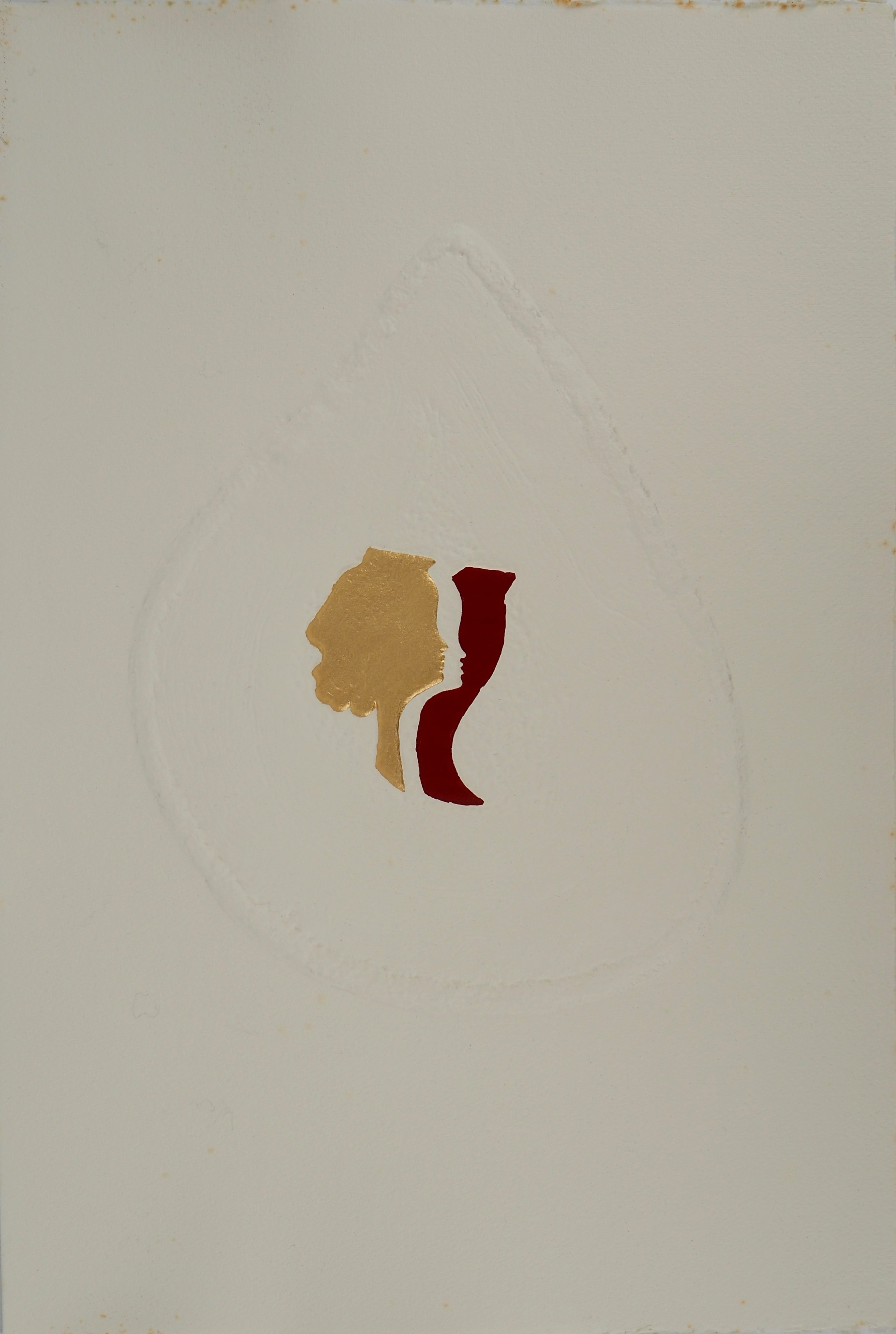 Georges BRAQUE : Les amoureux de profil, Gravure réhaussée à l’or