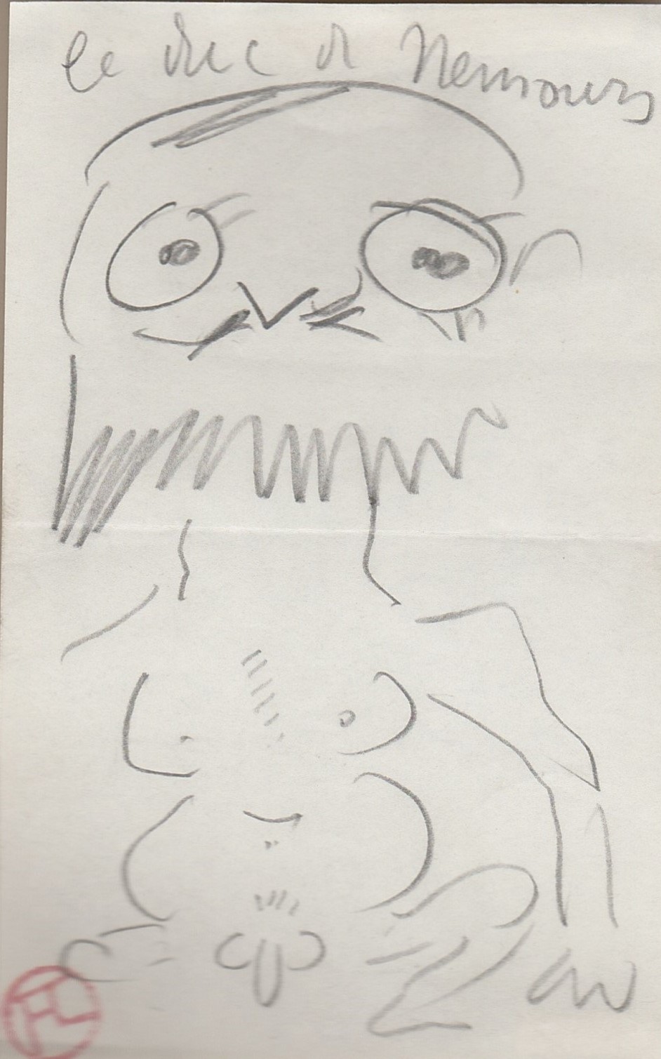 Mine de plomb sur papier, annoté de la main de l'artiste : « le duc de Nemours », 13 x 8 cm, monogramme en bas à gauche.