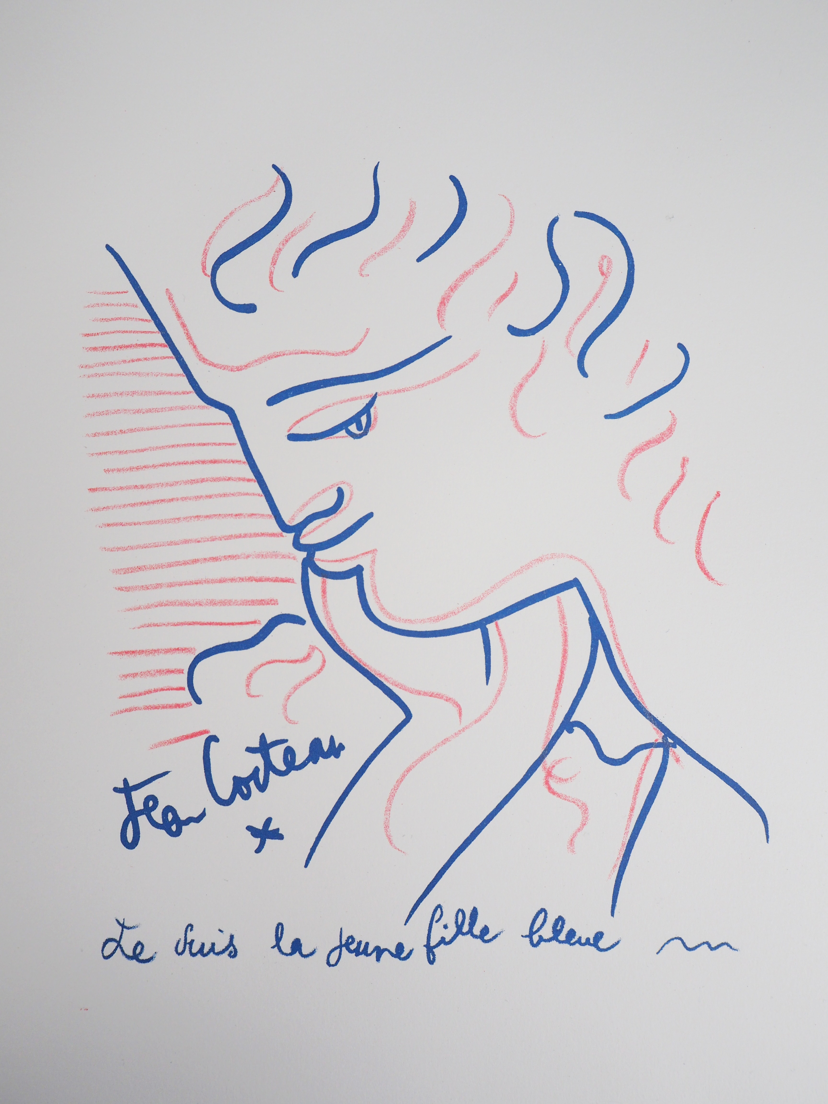 Jean COCTEAU : Jeune fille bleue - Lithographie signée
