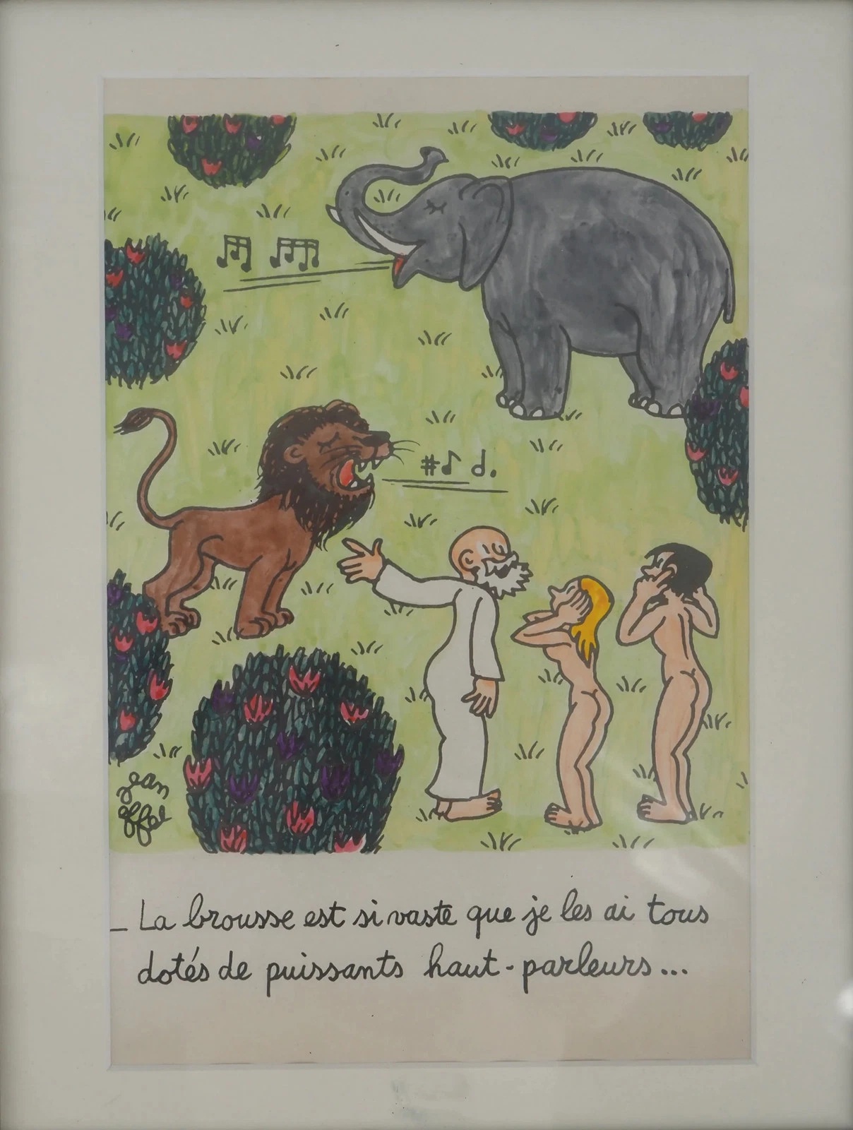 (1908-1982) Jean Effel, de son vrai nom François Lejeune (d'où F.L.), est un dessinateur français. On trouve des oeuvres de Jean Effel à Paris au Centre Pompidou - Musée national d'art moderne mais il a surtout travaillé comme dessinateur pour la presse.