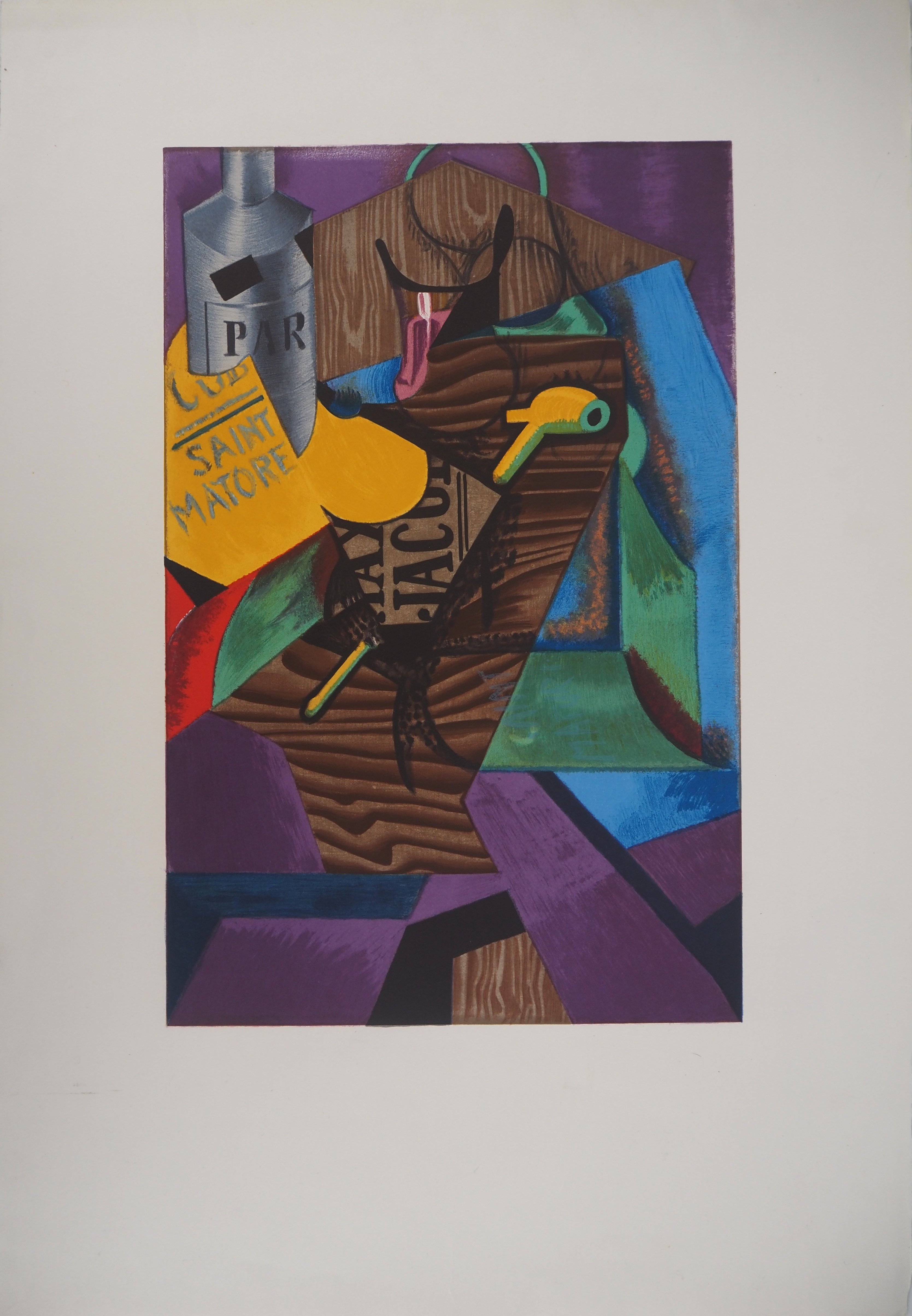 Juan GRIS - Composition cubiste à la pipe et au journal - Lithographie (Mourlot)