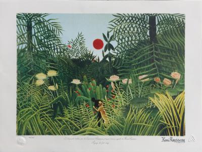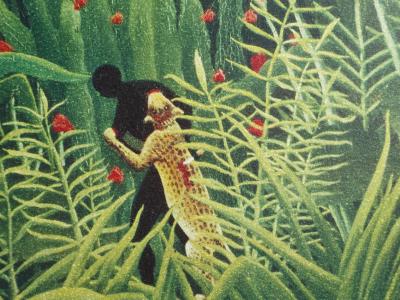 (1844-1910) dit Le Douanier Rousseau est un peintre français. Il est considéré comme un représentant majeur de l'art naïf. Issu d'une famille modeste, il étudie le droit avant de partir à Paris, où il travaille dans un octroi. Cette position lui vaut son surnom de « douanier ». Il apprend lui-même la peinture et produit un grand nombre de toiles, qui représentent souvent des paysages de jungle. Il n'a pourtant jamais quitté la France. Son inspiration provient surtout de livres illustrés, des jardins botaniques et de rencontres avec des soldats qui avaient participé à l'intervention française au Mexique.