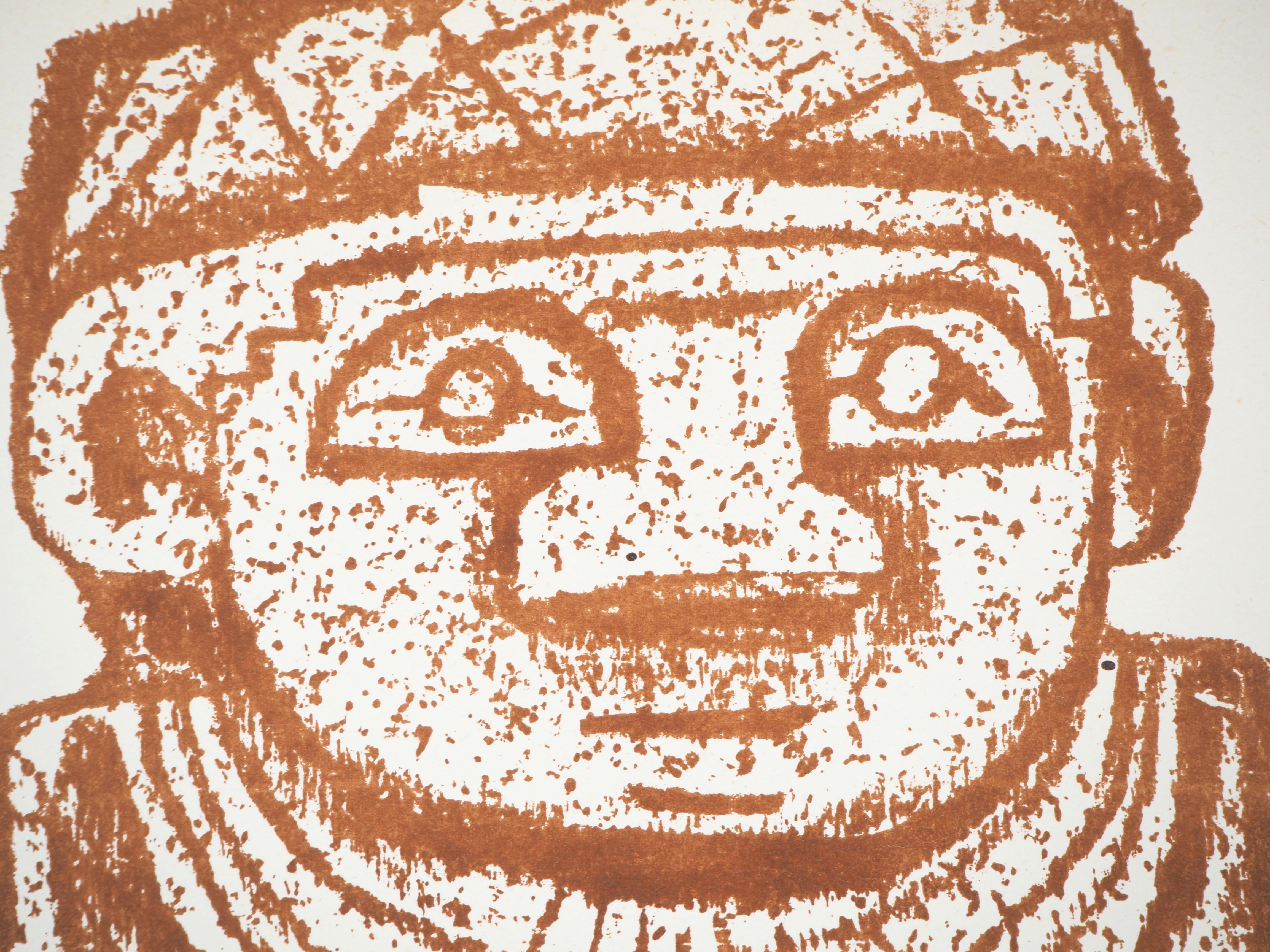 Lithographie à motif Précolombien : "Totem portant une offrande"