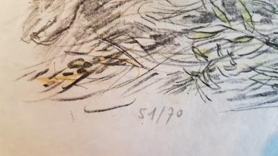 La lithographie tire son nom du grec lithos «pierre» et graphein, «écrire». Il s'agit d'une technique d’impression qui permet la création et la reproduction d'oeuvres graphiques en plusieurs exemplaires à partir de dessins reproduits sur une pierre calcaire. Le papier est mis en contact des pierres encrées dans une presse. Les lithographies peuvent être numérotées ou non. Des grands ateliers, comme Maeght ou Mourlot, maitres dans cette technique, et spécialisé dans cette technique on produit des lithographies des plus grands maîtres, très recherchées aujourd'hui