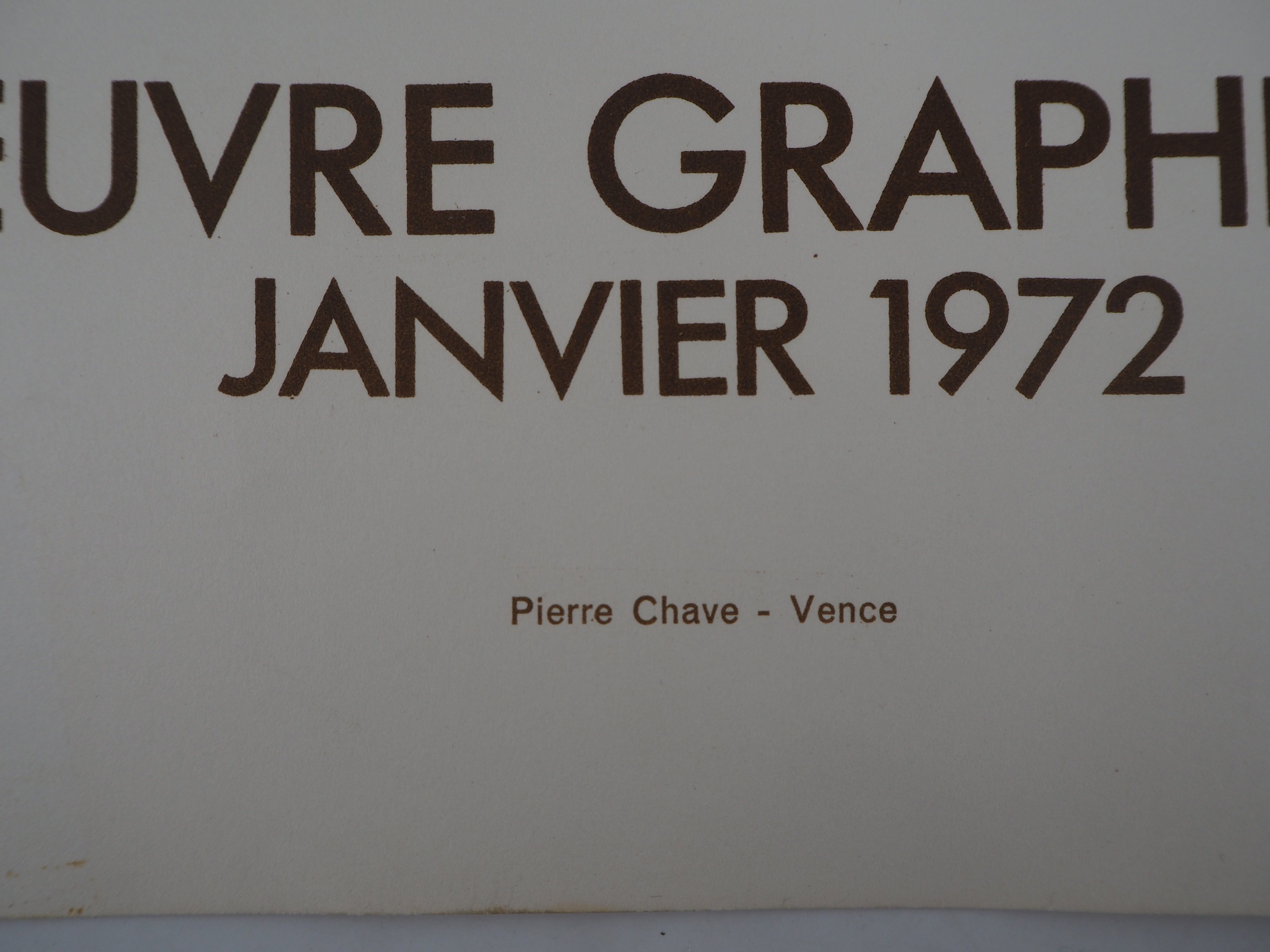 La lithographie tire son nom du grec lithos «pierre» et graphein, «écrire». Il s'agit d'une technique d’impression qui permet la création et la reproduction d'oeuvres graphiques en plusieurs exemplaires à partir de dessins reproduits sur une pierre calcaire. Le papier est mis en contact des pierres encrées dans une presse. Les lithographies peuvent être numérotées ou non. Des grands ateliers, comme Maeght ou Mourlot, maitres dans cette technique, et spécialisé dans cette technique on produit des lithographies des plus grands maîtres, très recherchées aujourd'hui