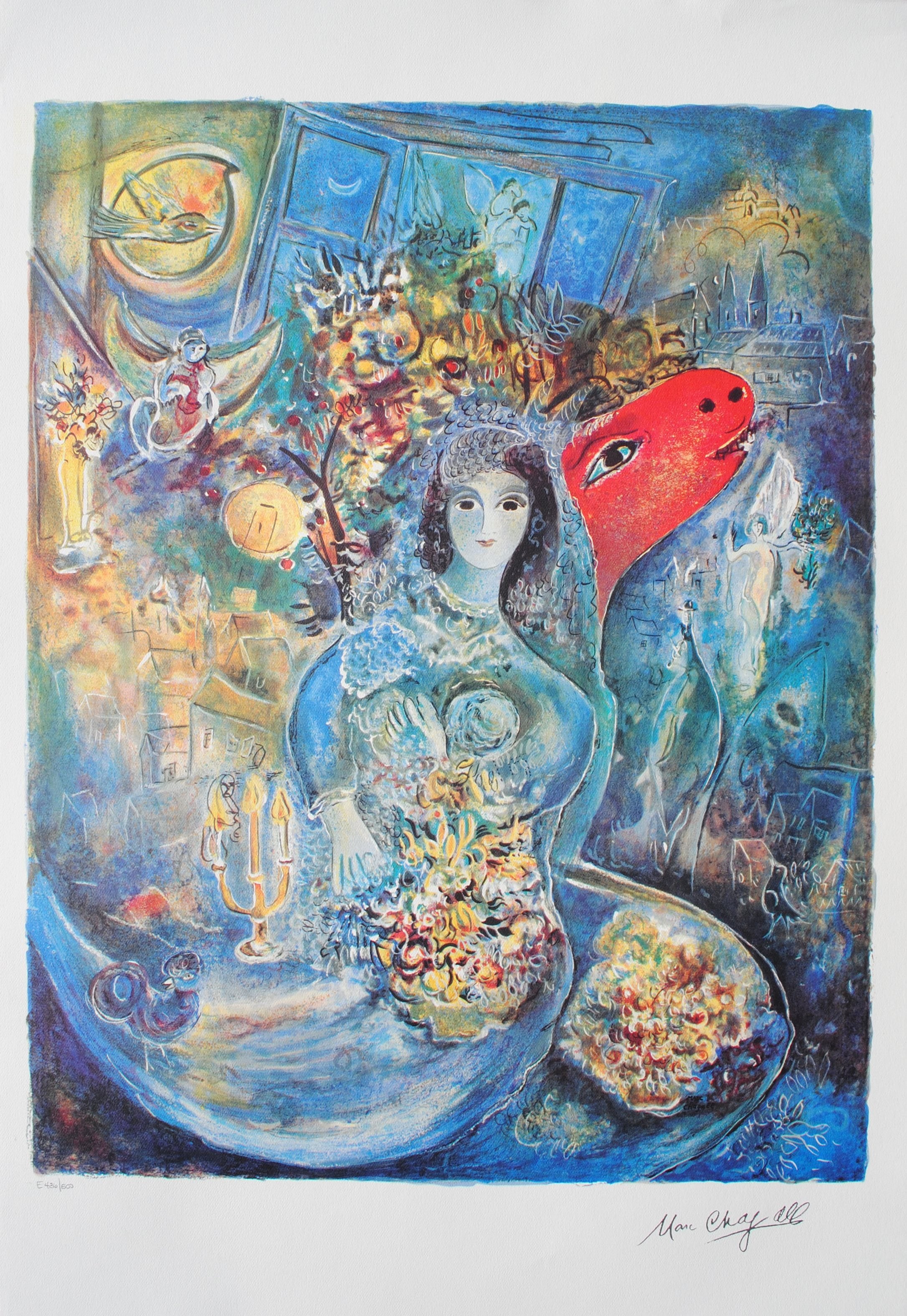 Marc CHAGALL : La mariée aux fleurs, Lithographie signée et numérotée
