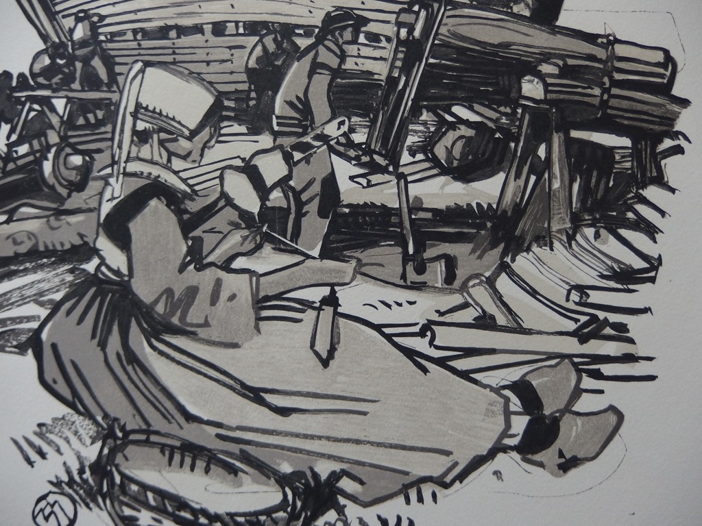 Bois gravé : La xylographie (aussi connue sous le nom de "Bois Gravé") est un procédé de gravure très ancien (connu en Asie dans l'antiquité) utilisant une matrice en bois gravé. Encrée, cette matrice permet de reproduire le motif. Cette technique, utilisée pour reproduire des textes, est considérée comme l'ancêtre de l’imprimerie. Au XXème siècle, elle a été très utilisée par les artistes expressionnistes allemands.
