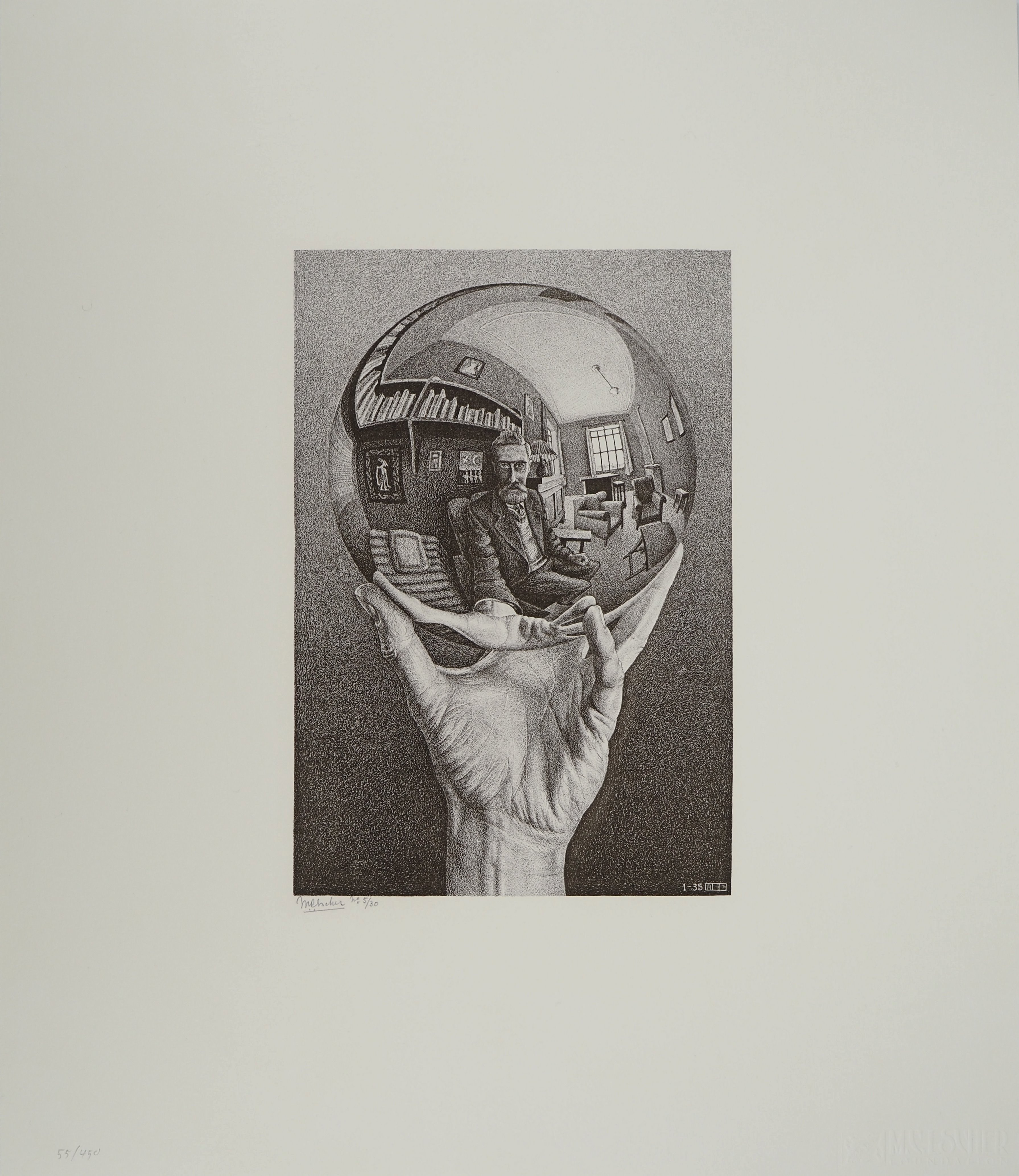 Maurits Cornelis Escher : Main avec globe réfléchissant, Fac-similé du bois gravé original, 450ex