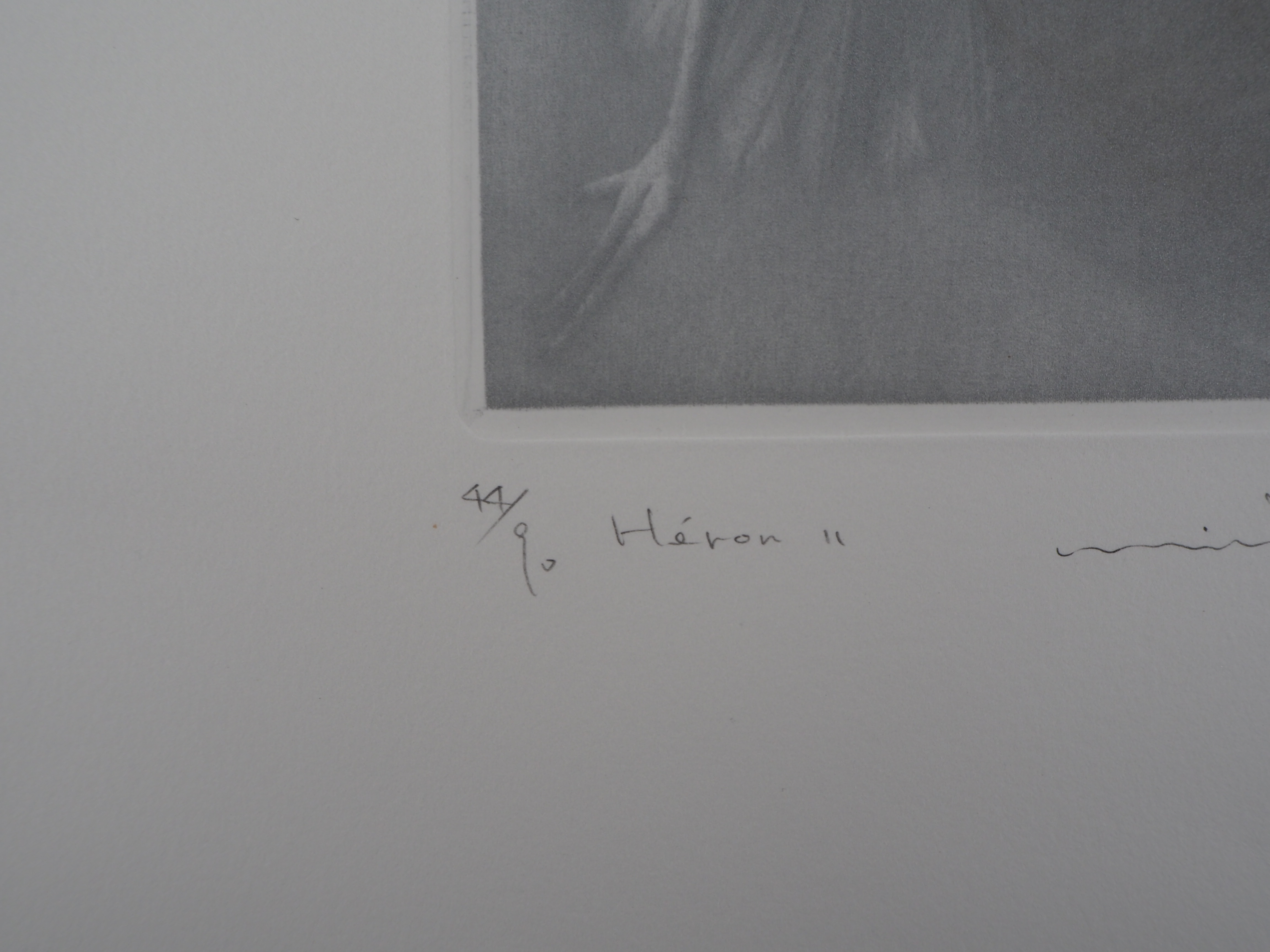 Mikio WATANABE : Héron, Gravure originale signée, 2012