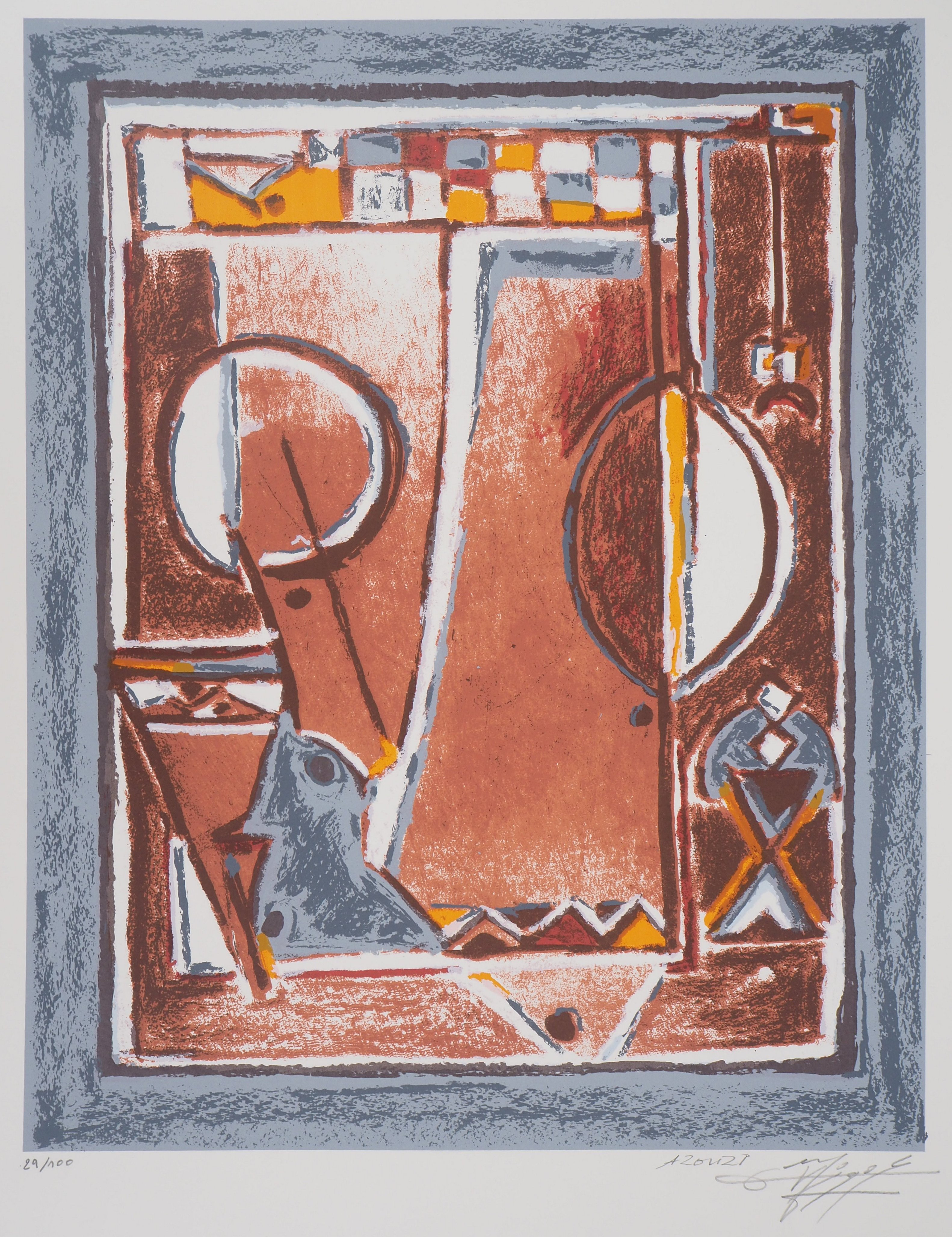 Mohammed Azouzi : Composition abstraite - Lithographie Originale Signée