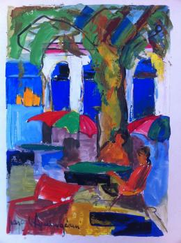 Pascal AMBROGIANI - "La terrasse", Gouache signée