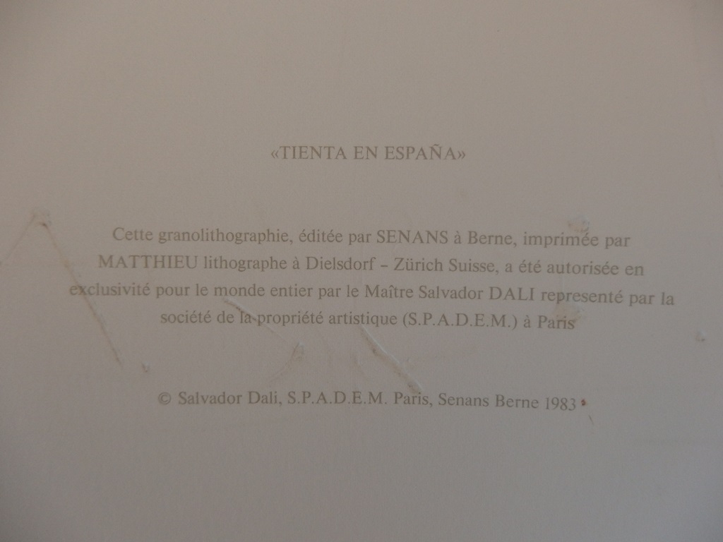 Édition autorisée par Dali, imprimée en granolithographie dans les ateliers Matthieu