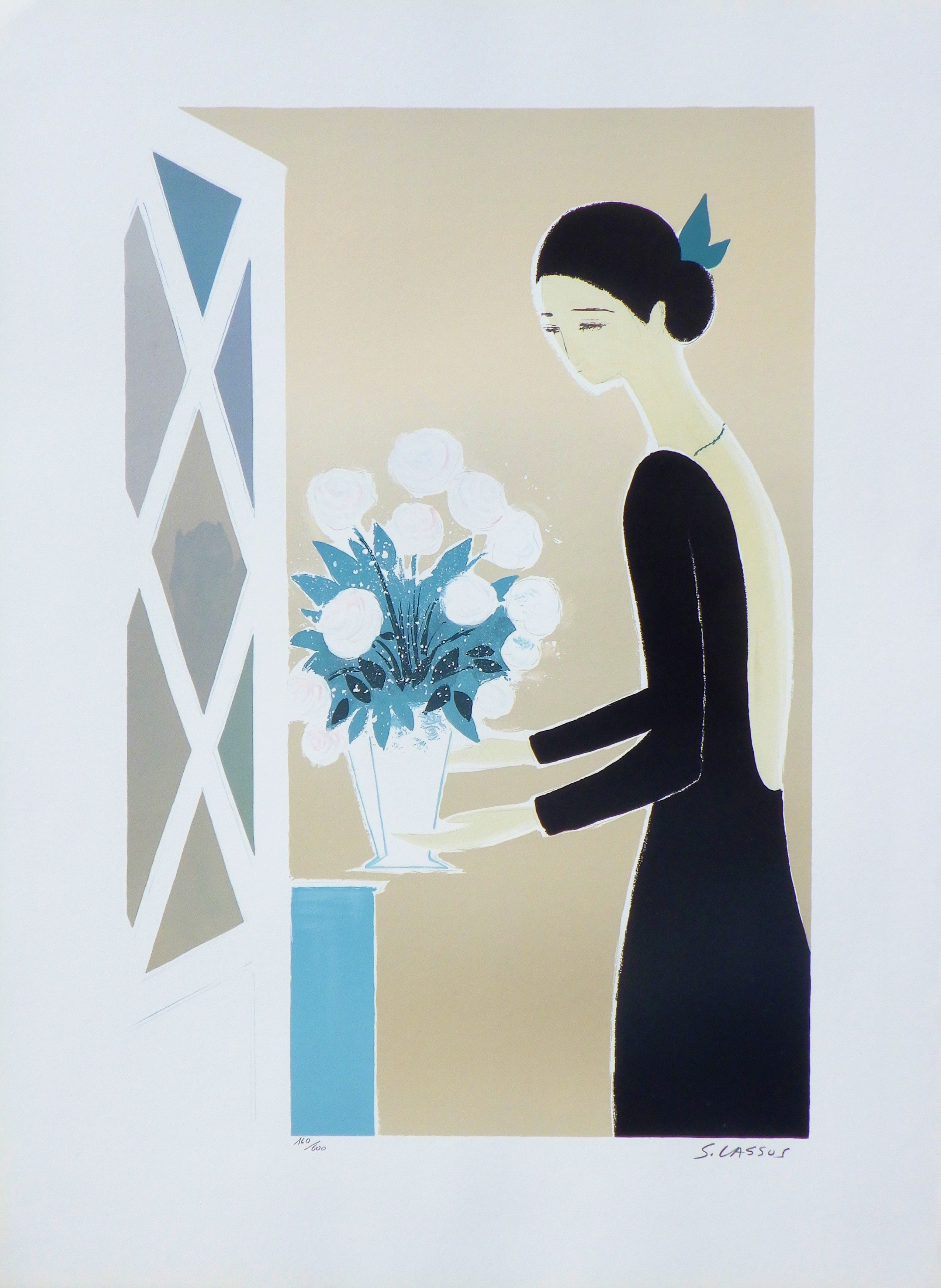 Serge LASSUS : Le bouquet blanc, Lithographie originale signée