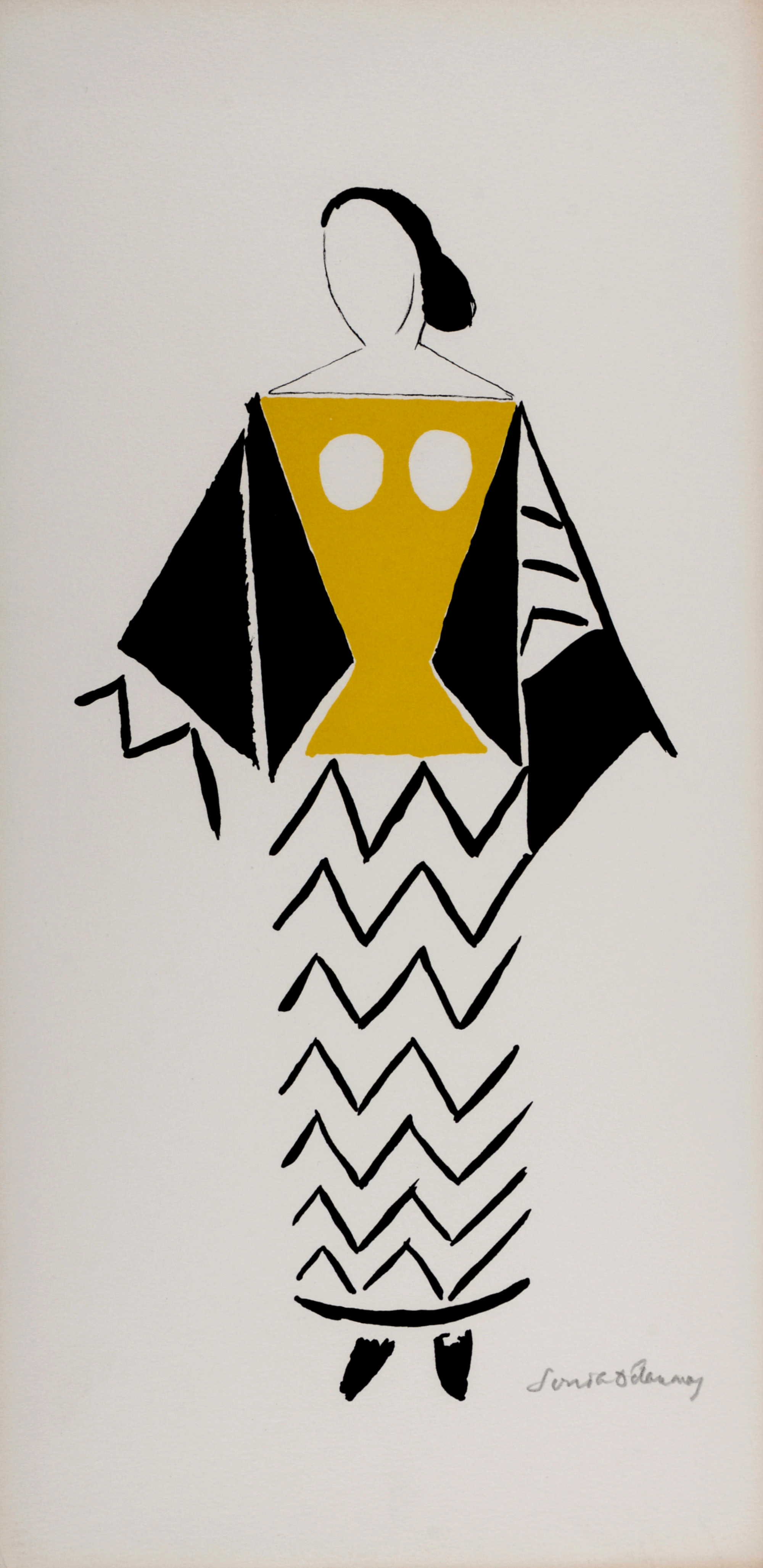 Sonia Delaunay : (1885-1979) est une artiste française née russe. Elle est l'une des artistes féminines les plus importantes du XXe siècle. Elle a passé sa vie en grande partie à Paris, avec son mari Robert Delaunay, et a cofondé le mouvement "Orphisme", connu pour son utilisation de couleurs fortes et formes géométriques. Ses travaux incluent des peintures, design textile, et design et décors scéniques. Elle fut la première artiste femme vivante a bénéficier d'une exposition retrospective au Louvre en 1964. Elle fut nommée officier de la Légion d'Honneur en 1975. Son travail a récemment fait l'objet d'une importante rétrospective qui a débuté au Grand Palais à Paris.