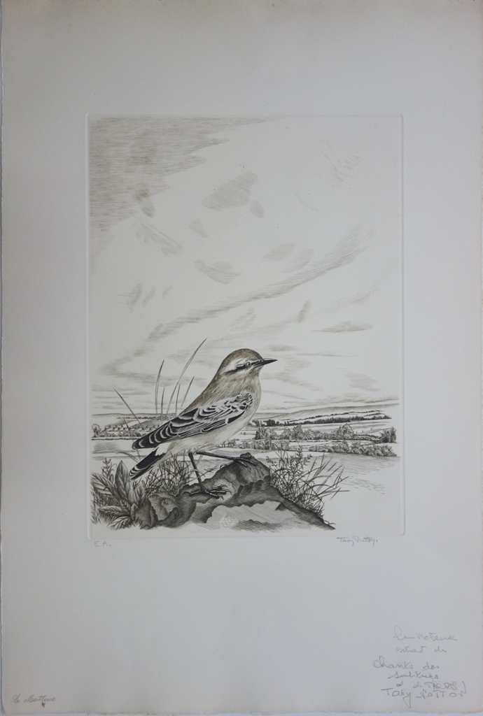 Tavy NOTTON : Moineau solitaire, Gravure originale signée