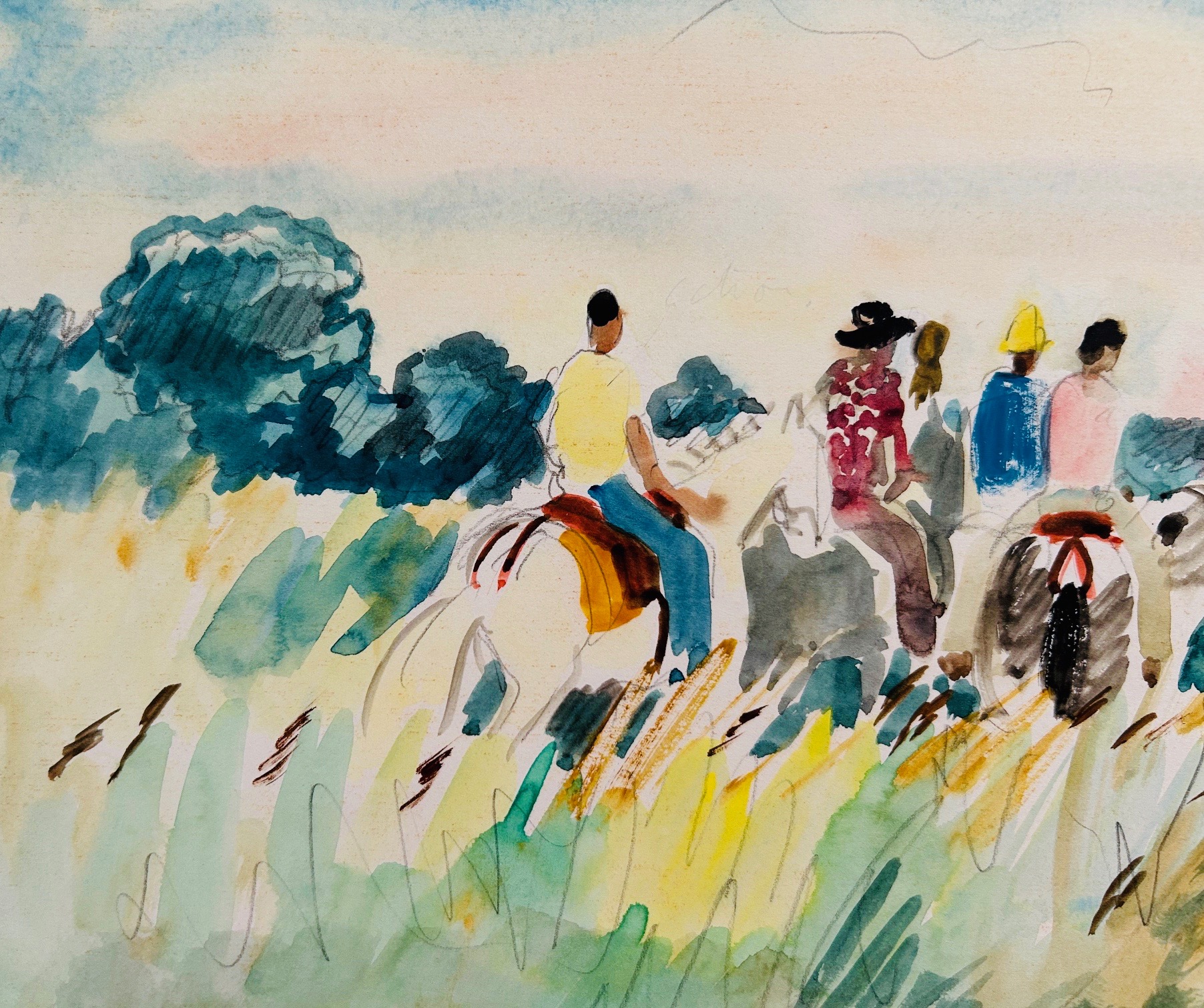 Yves BRAYER - Cavaliers en Camargue, 1970 - Aquarelle originale signée