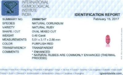Le rubis est un oxyde l'aluminium de la famille minérale corindon. Sa couleur rouge est due à la présence de chrome. Très prisé en joaillerie, la qualité d'un rubis dépend de sa dimension, sa couleur, sa pureté et sa taille. Notez que le rubis naturel possède des inclusions (alors que les rubis synthétiques peuvent donner l'impression d'être parfaits). Dans une pierre naturelle, plus ces inclusions sont rares et infimes, plus la pierre a de valeur. Les rubis proviennent principalement d'Asie, en particulier de Birmanie, Sri Lanka et Thailande.