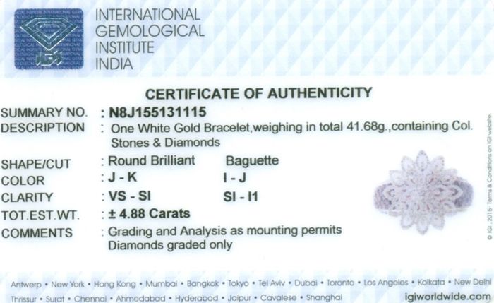 Bracelet Créateur Or Blanc Diamants et Rubis - Certifié IGI 14 K / 585
