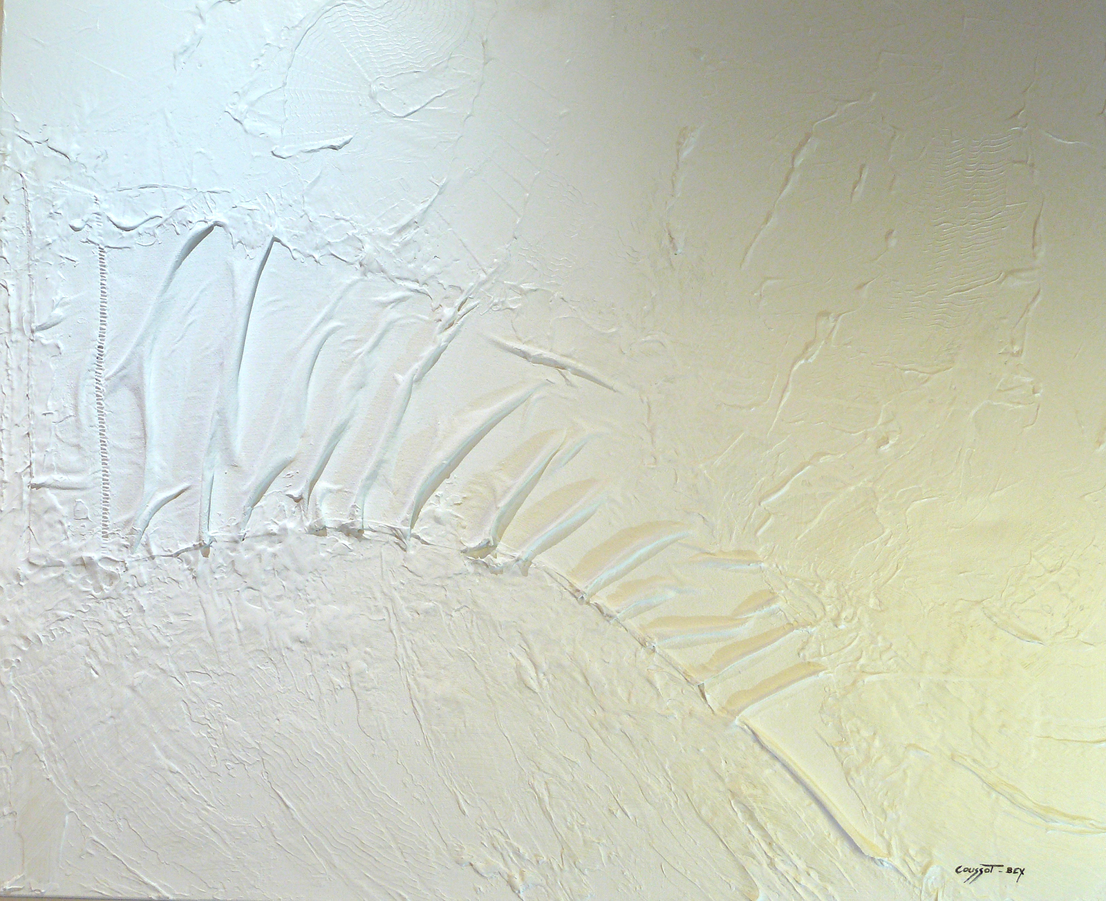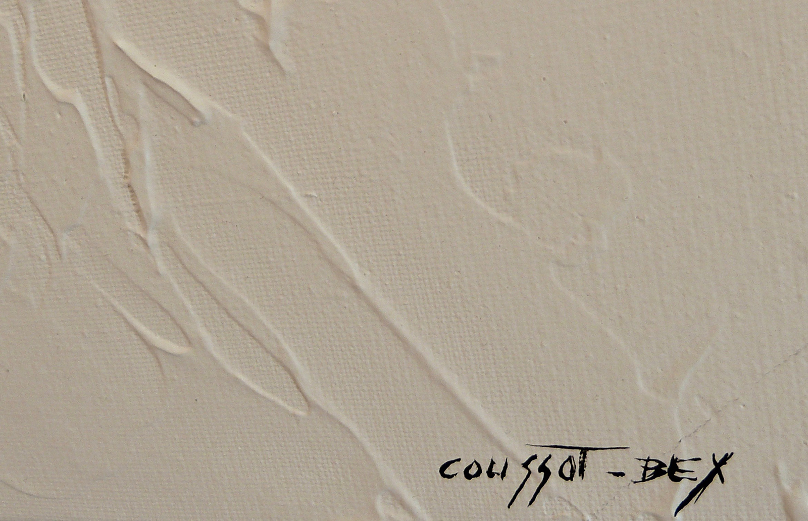 Patrick Coussot Bex : Patrick Coussot Bex, né en 1949, se passionne pour la peinture dès son adolescence. Peu à peu, sa passion et son imagination l'ont amené aux métiers de la décoration. Il réalise notamment des fresques monumentales sur des murs entiers d'appartements de particuliers. Fin des années 70 - début des années 80, il expose dans plusieurs capitales européennes dont Paris et Athènes. Les années passant, Patrick Coussot Bex s'approche de plus en plus de l'abstraction. Actuellement, il s'inspire des ondes, provoquant les plissements sur ses toiles. Il aime le contraste franc entre le noir et le blanc mais va aussi vers la couleur par le biais du bleu qu'il souhaite évocateur des profondeurs marines.