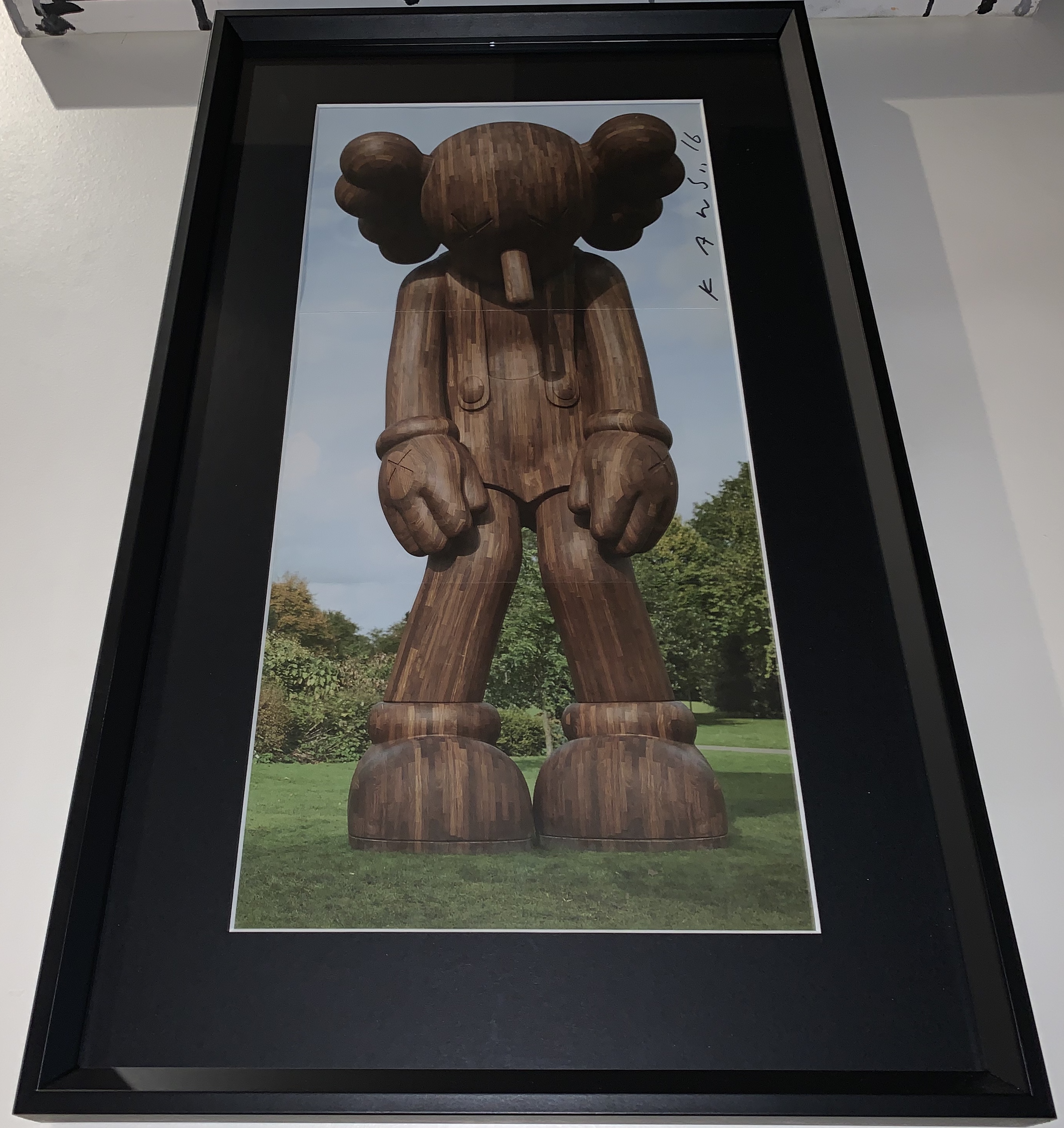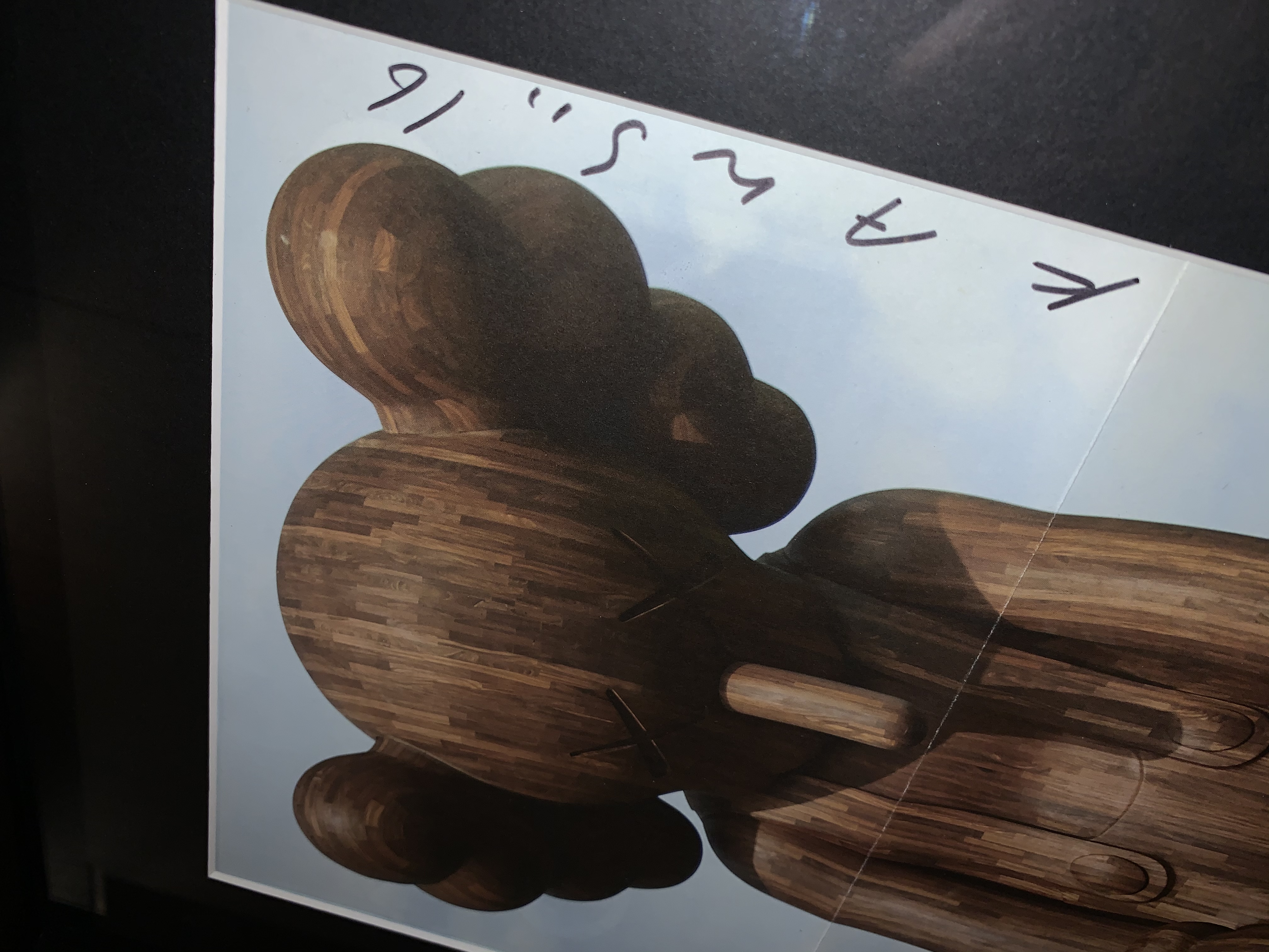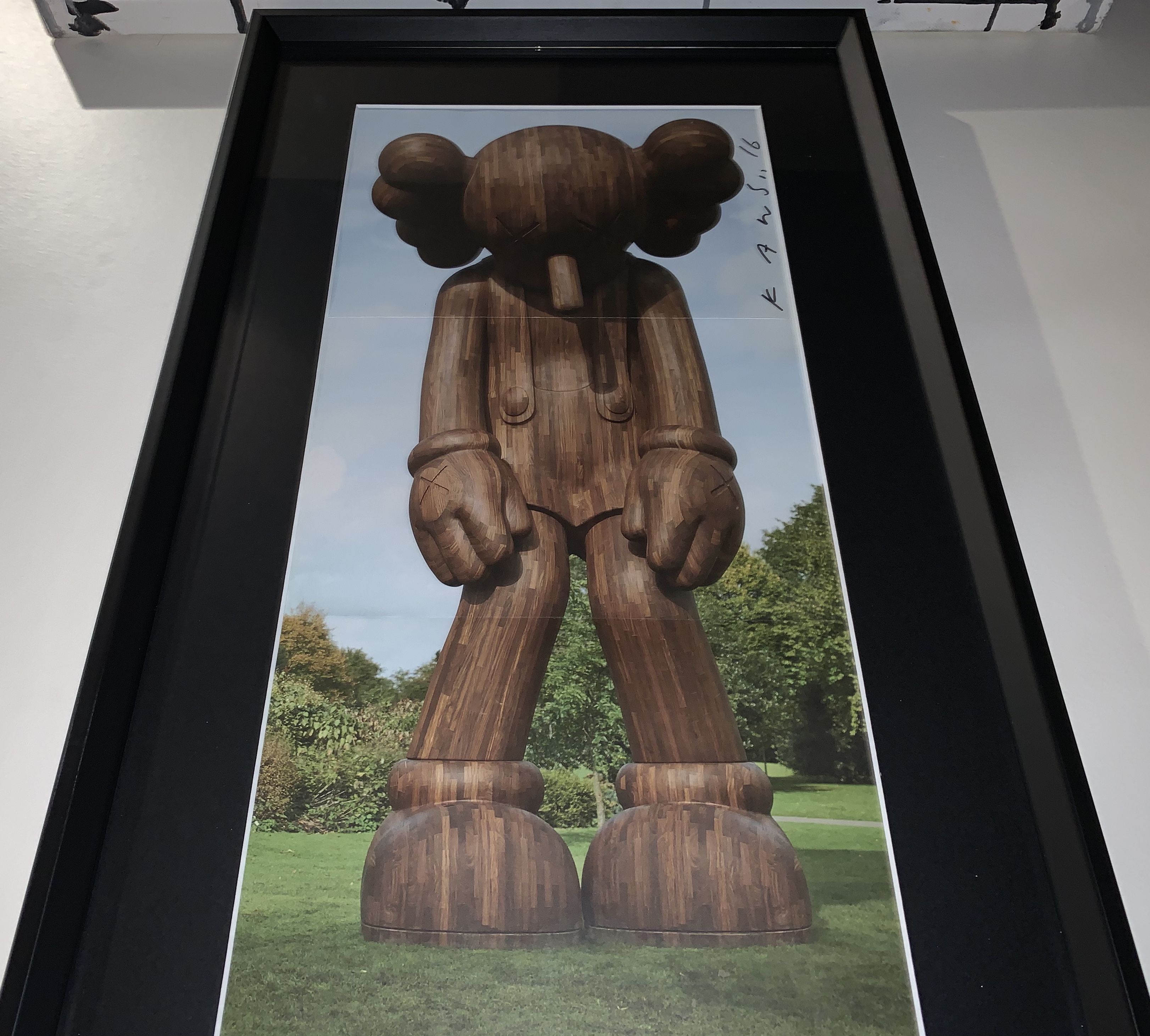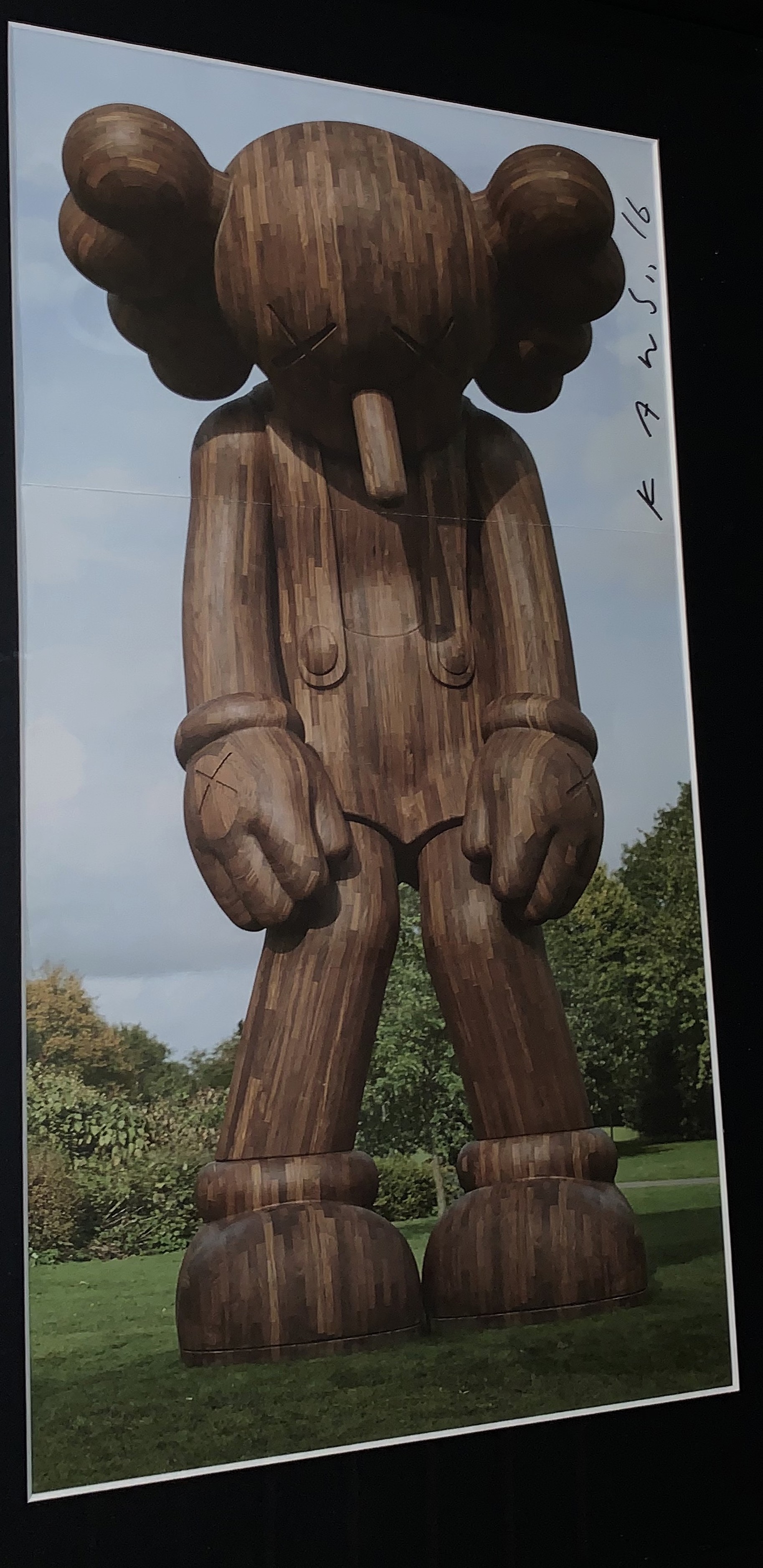 KAWS : Kaws est un artiste new yorkais né en 1974 à Jersey City. Issu de la scène graffiti, il concilie les références aux icônes de la culture pop, l'énergie frontale des peintres urbains et des moyens de production à grande échelle typiques du pop art.