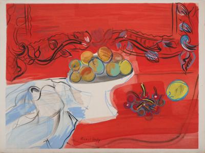 Frère de l'artiste Jean Dufy, Raoul naît en 1877 au Havre où il passe son enfance. Etudiant aux Beaux Arts, il travaille à Paris depuis 1900, s’intéressant d'abord aux impressionnistes et aux postimpressionnistes. Dufy travaille avec Albert Marquet à Fécamp, Trouville et au Havre. L'année 1905 marque pour lui une évolution vers une peinture nouvelle. La découverte de l'oeuvre de Matisse "Luxe, calme et volupté" (1904) apparaît comme la révélation de sa rupture avec l'impressionnisme ("Jeanne dans les fleurs", 1907). Vers 1909, son art s'allège, s'empreint de grâce et d'humour ("Le bois de Boulogne", 1909). L'artiste s'affirme également dans l'illustration d'ouvrages comme "Bestiaire d'Orphée" d'Apollinaire en 1910. Il s'intéresse également à l'art décoratif et fonde une entreprise de décoration textile avec Paul Poiret en 1911. Après la première Guerre Mondiale, sa peinture s'épanouit dans son style définitif, marquée par un dessin vif, des couleurs pures au contour arbitraire, représentant généralement un fourmillement de personnages sur des aplats de couleurs vives ("Course à Epson", 1935). Après la guerre l'artiste pratique de plus en plus l'aquarelle et la fin de sa vie tend vers un plus grand dépouillement ("Le violon rouge", 1948). En 1952, Dufy remporte le Grand Prix International de Peinture à la XXVIème Biennale de Venise, il meurt l'année suivante.