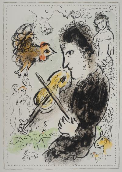 Marc CHAGALL : Violoniste au coq, Lithographie originale