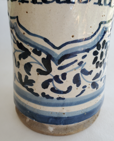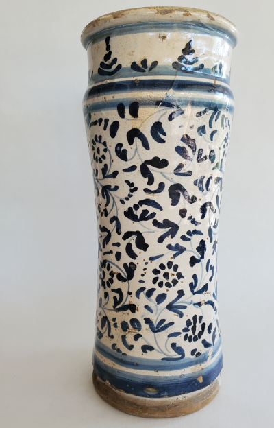 Albarello in terracotta bianca e blu con motivi floreali e iscrizione entro riserva "Santa ENDIVIAE". Bellissime condizioni per l’epoca, Spagna del XVII secolo. Nota, qualche piccolo graffio. Altezza 28 cm Spedizione accurata, sicura e tracciata tramite colissimo.