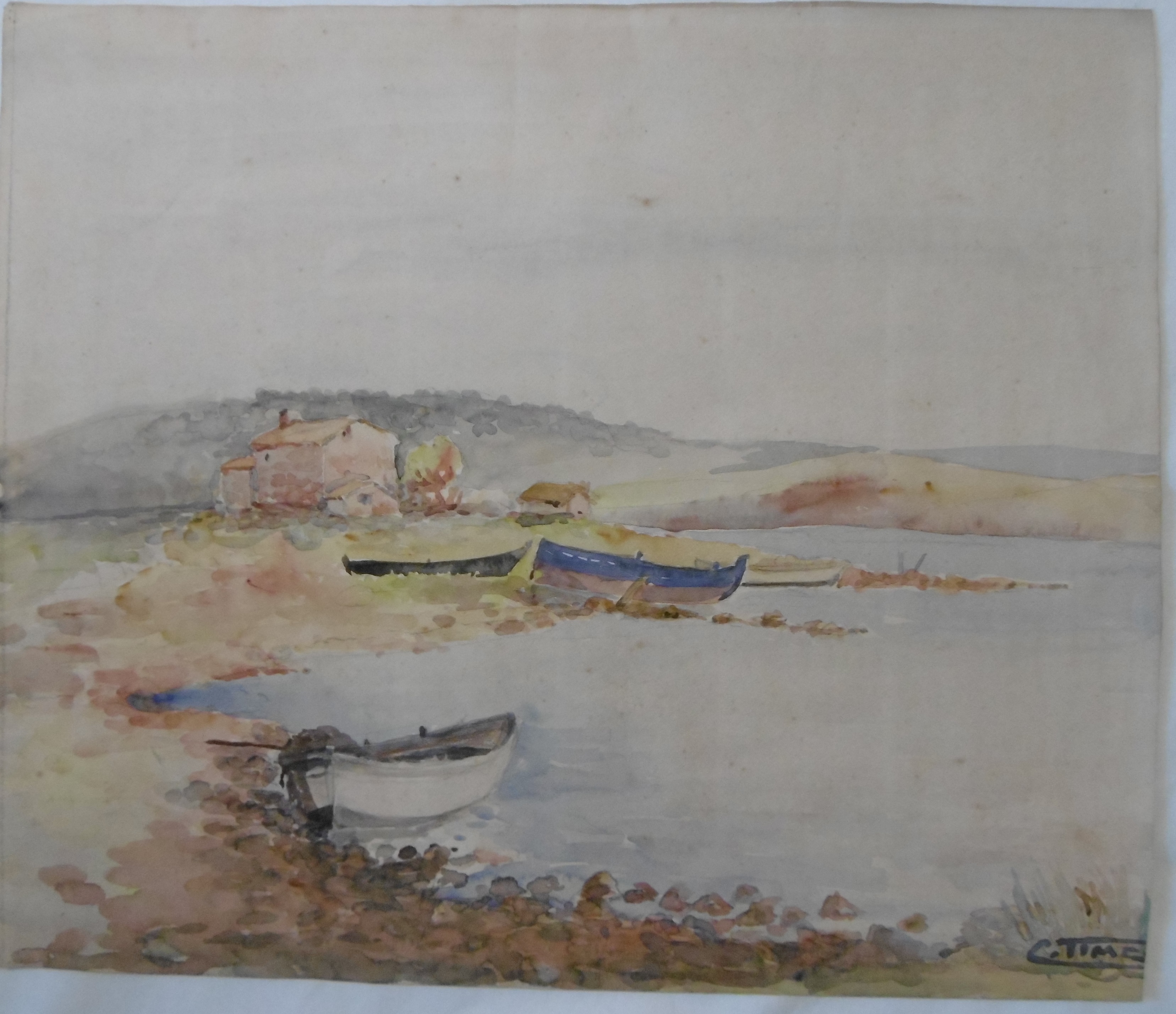 Aquarelle Signée et tampon au dos de Charles Timsit