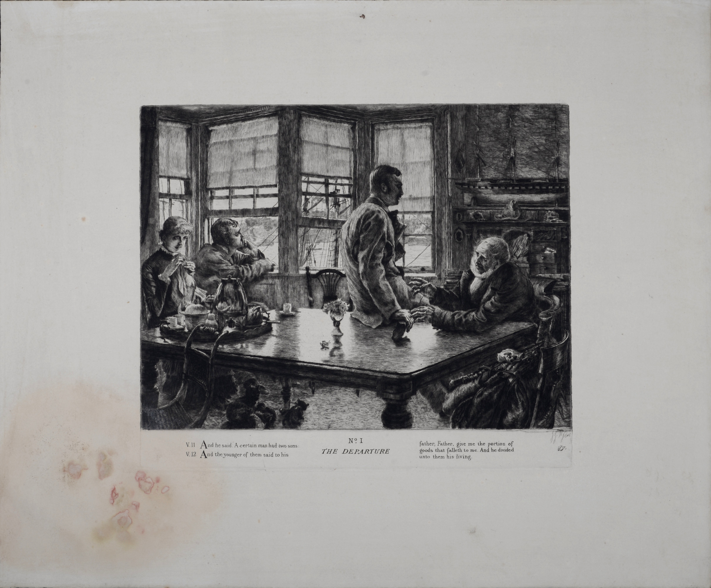 Set of 4 unbound etchings on wove paper, including "The Departure", "In Foreign Climes", "The Return", and "The Fatted Calf"