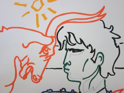 Jean COCTEAU : Face à face au soleil - Lithographie Signée