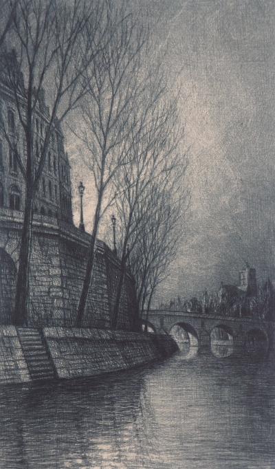 Jean-Michel MATHIEUX-MARIE La Senna, Quai d'Anjou Incisione originale a punta secca Firmato a matita dall'artista Su pergamena, 32,5 x 25 cm Numerati su 100 Condizioni eccellenti