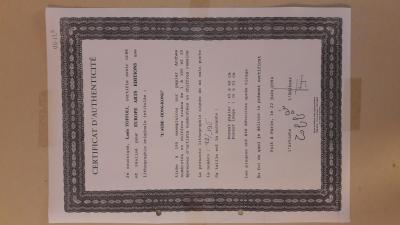 Lithographie de Toffoli "Aube à Hong-Kong" en excellent état. Certificat d'authenticité et dédicacé au dos par l'artiste rencontré lors de l'achat en 1994.