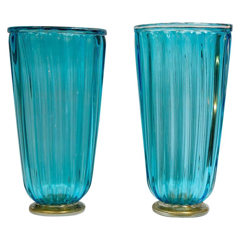 Coppia di vasi in vetro di Murano firmati "Toso"