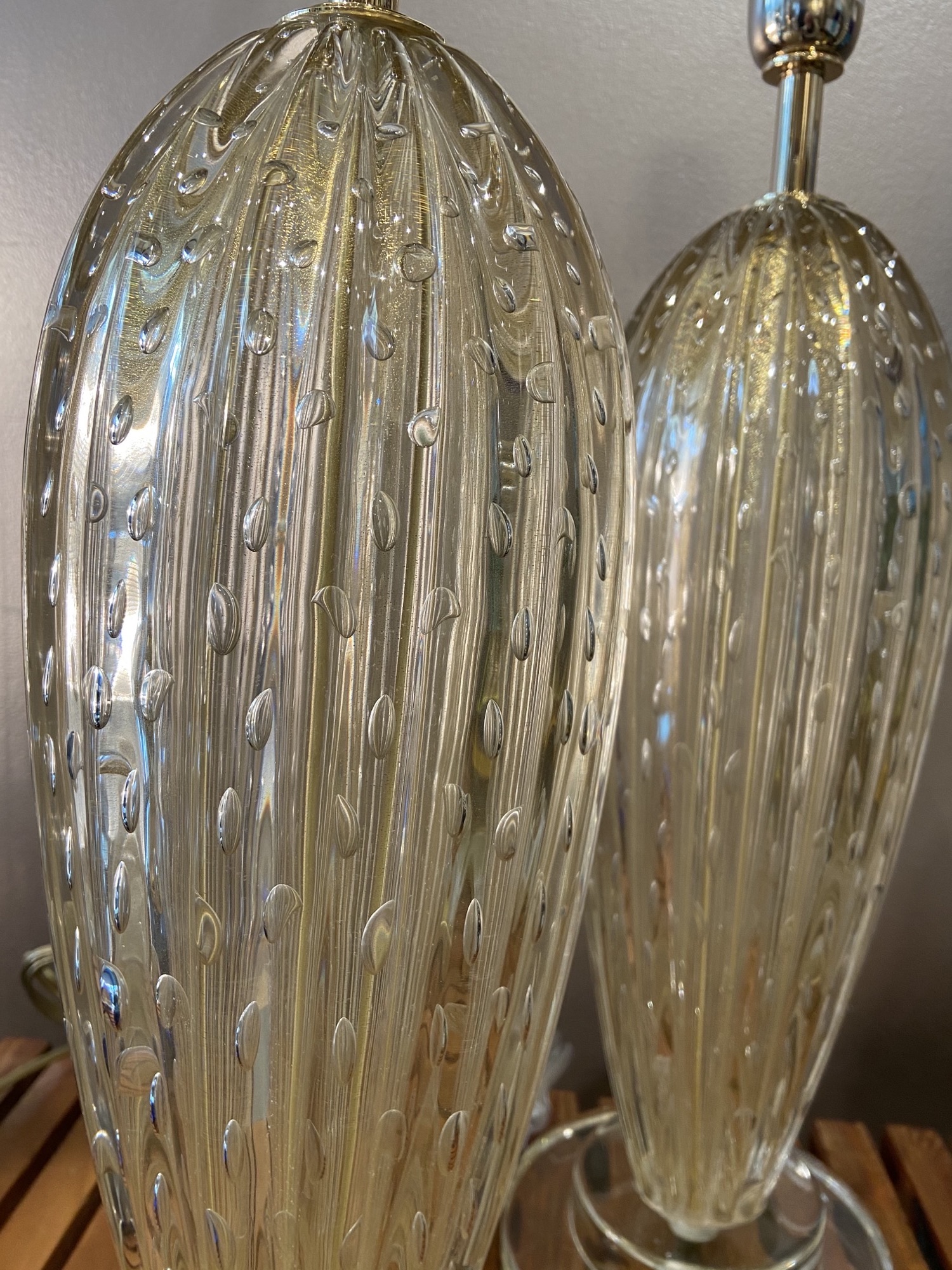 Coppia di lampade dorate, circa 1980